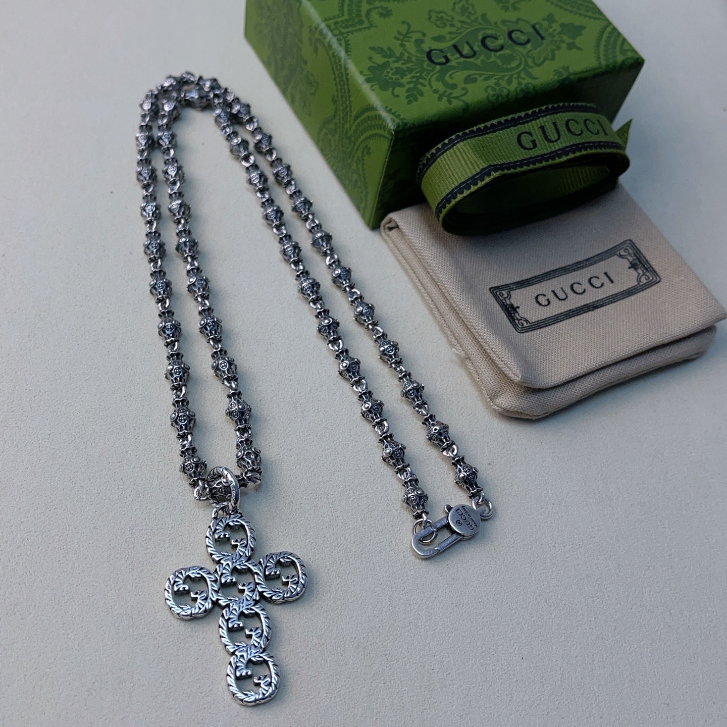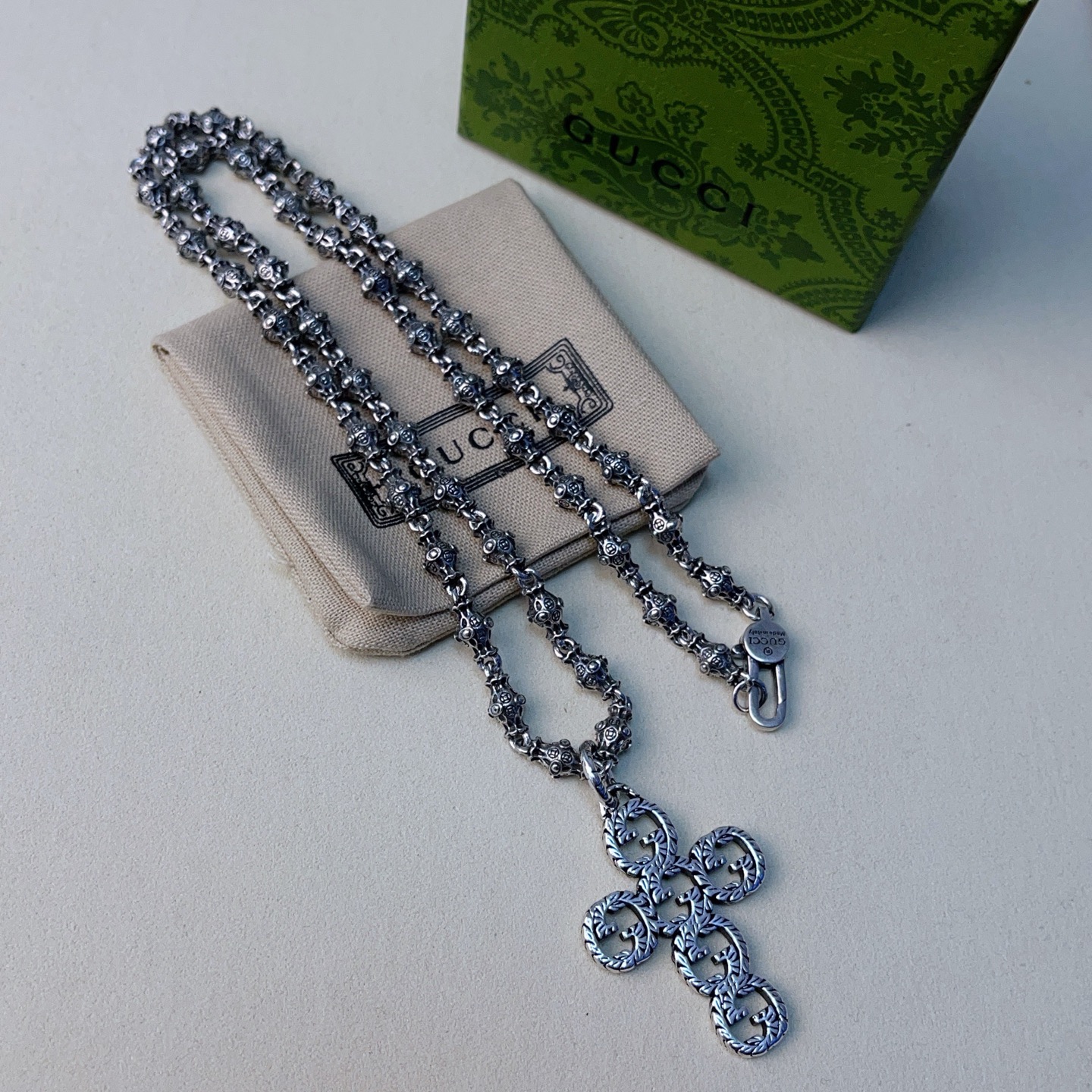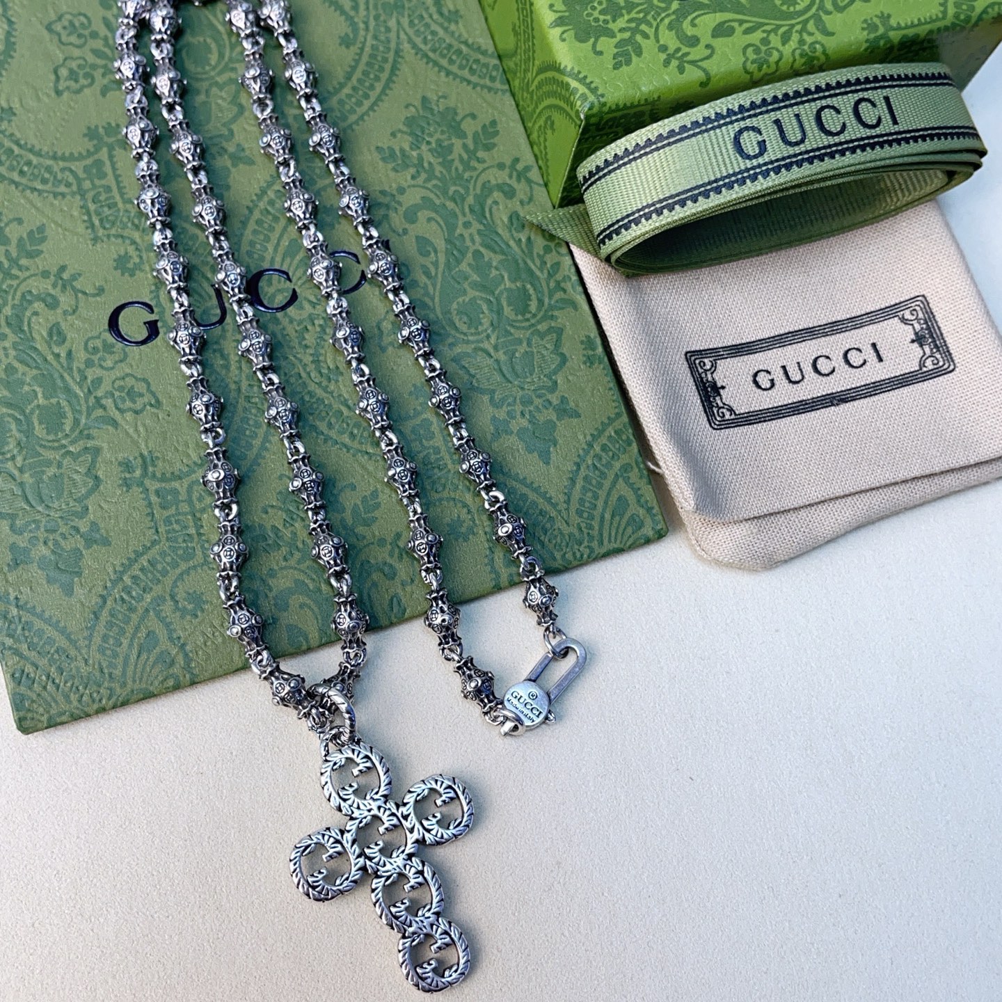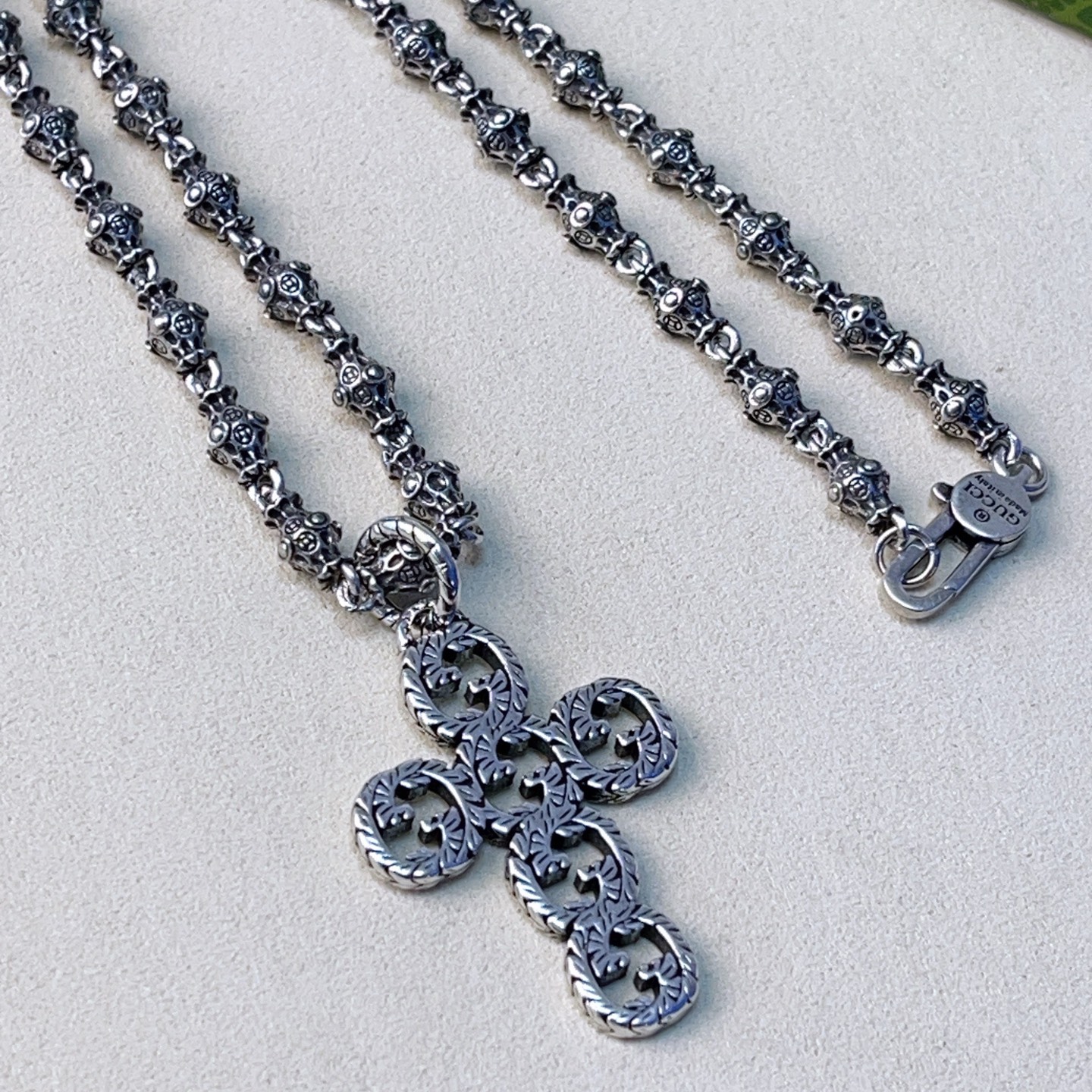 {"product":{ "goodsID":11055532, "skuid":2820213, "relatedCode":"", "cat": 1656, "brand": 424, "goodsIsShow":1, "price":58.00, "skuImage":"https://xcimg.szwego.com/img/94a26887/20260111/i1768099378339_3424_0_0.jpg?imageMogr2/auto-orient/thumbnail/!650x650r/quality/100/format/jpg", "skuImage_small":"https://xcimg.szwego.com/img/94a26887/20260111/i1768099378339_3424_0_0.jpg?imageMogr2/auto-orient/thumbnail/!440x440r/quality/100/format/jpg", "skuIsShow": 1, "Limited": 0, "LimitedMin": 0, "skuStore": 999, "skuSellCounter":0, "skuReviewCounter":0, "cateAttention":"", "cateAttentionUrl":"", "cateAttentionContent":"", "goodsName":"Anger Forest", "goodsBrand":"GUCCI", "category":"Necklaces", "sizeChartID":"0", "promotion":false, "option_image_text_hide":false, "declaration":"Necklaces" },"time":1776602220542}
