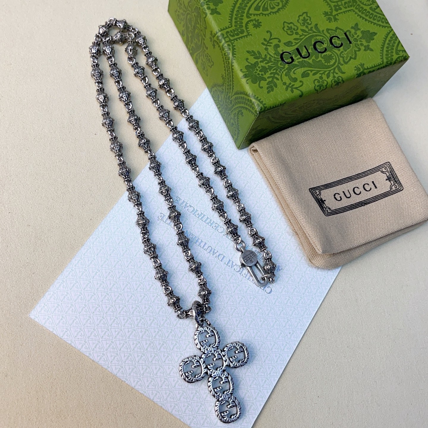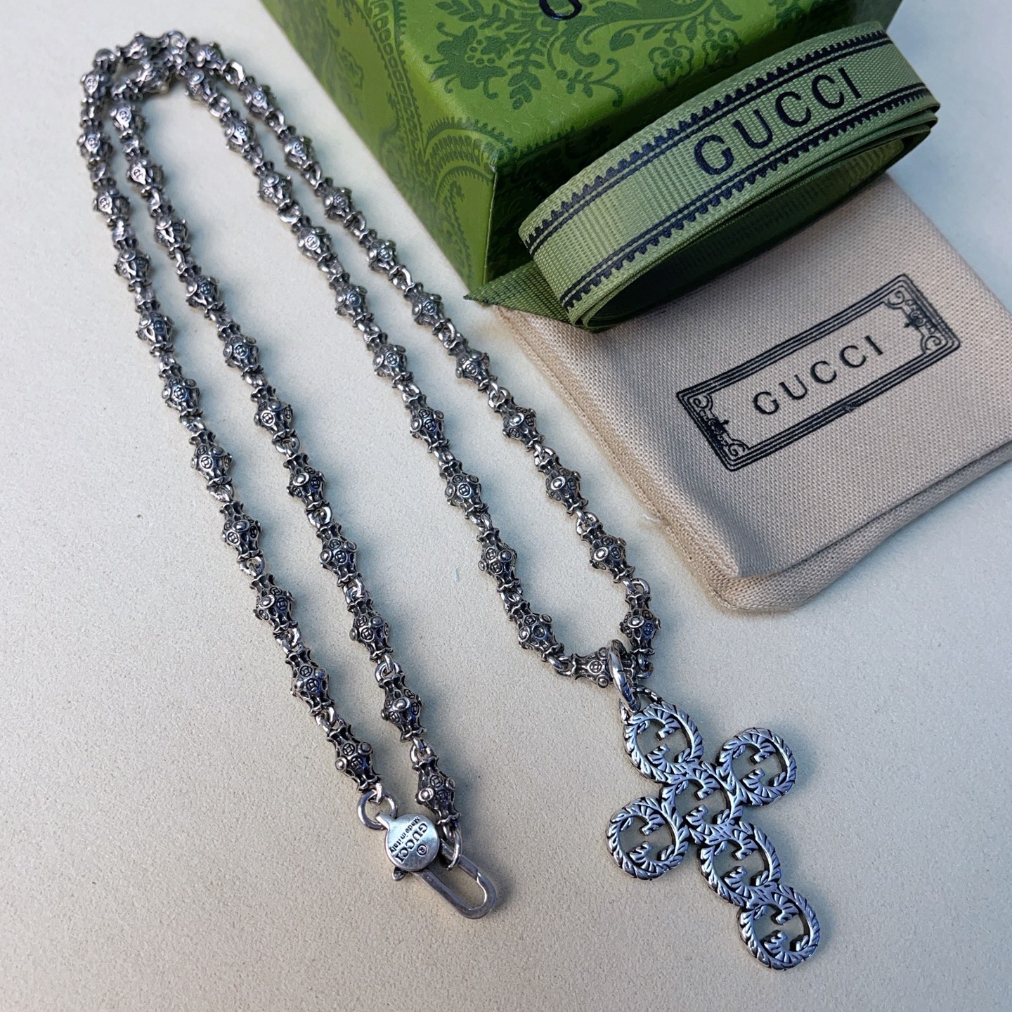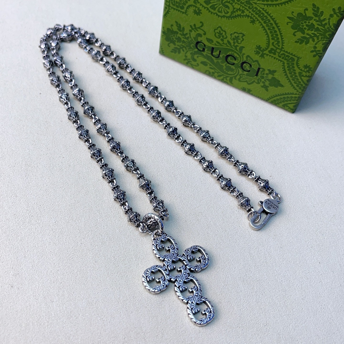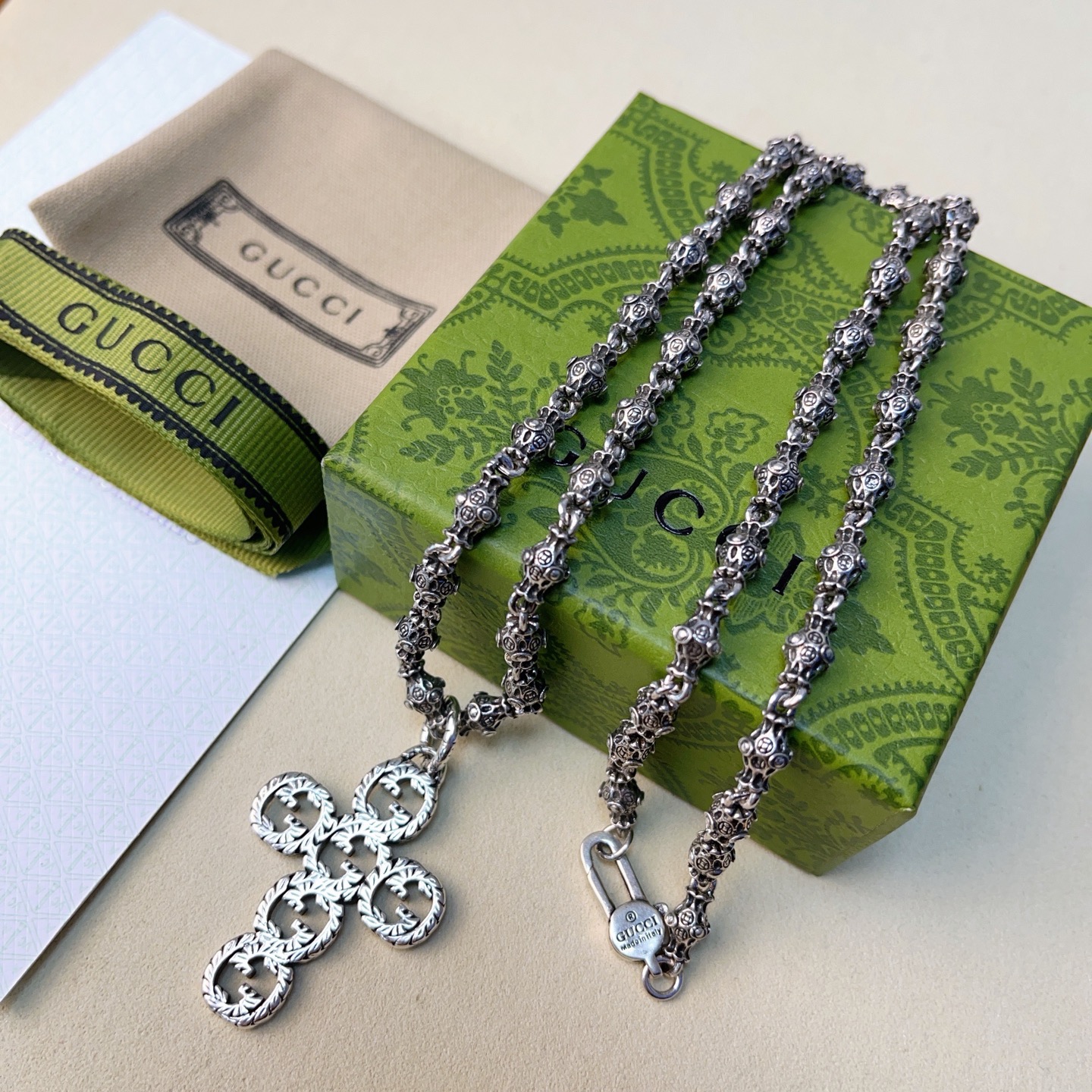 {"product":{ "goodsID":11055532, "skuid":2820213, "relatedCode":"", "cat": 1656, "brand": 424, "goodsIsShow":1, "price":58.00, "skuImage":"https://xcimg.szwego.com/img/94a26887/20260111/i1768099378339_3424_0_0.jpg?imageMogr2/auto-orient/thumbnail/!650x650r/quality/100/format/jpg", "skuImage_small":"https://xcimg.szwego.com/img/94a26887/20260111/i1768099378339_3424_0_0.jpg?imageMogr2/auto-orient/thumbnail/!440x440r/quality/100/format/jpg", "skuIsShow": 1, "Limited": 0, "LimitedMin": 0, "skuStore": 999, "skuSellCounter":0, "skuReviewCounter":0, "cateAttention":"", "cateAttentionUrl":"", "cateAttentionContent":"", "goodsName":"Anger Forest", "goodsBrand":"GUCCI", "category":"Necklaces", "sizeChartID":"0", "promotion":false, "option_image_text_hide":false, "declaration":"Necklaces" },"time":1776602220542}