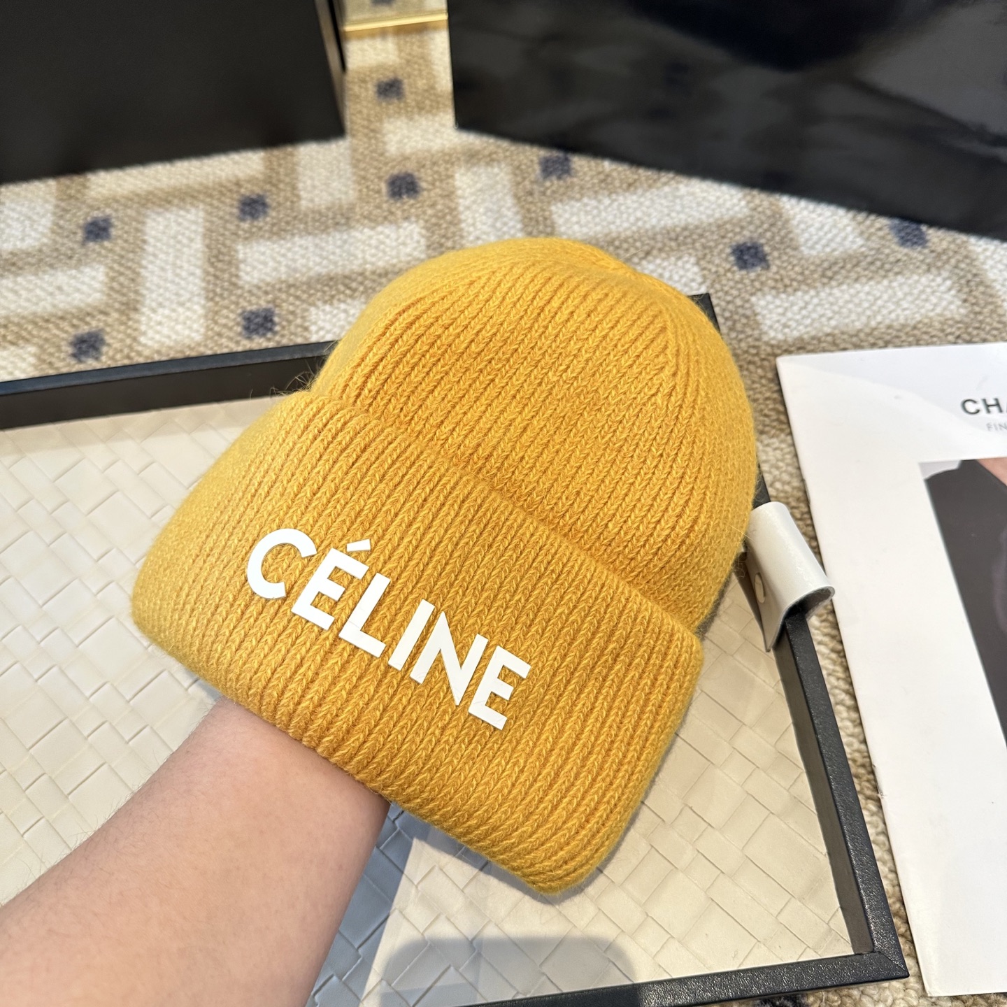 {"product":{ "goodsID":10994129, "skuid":2703372, "relatedCode":"", "cat": 1671, "brand": 505, "goodsIsShow":1, "price":22.00, "skuImage":"https://xcimg.szwego.com/img/acc58fe6/20260106/i1767676264168_1683_0_0.jpg?imageMogr2/auto-orient/thumbnail/!650x650r/quality/100/format/jpg", "skuImage_small":"https://xcimg.szwego.com/img/acc58fe6/20260106/i1767676264168_1683_0_0.jpg?imageMogr2/auto-orient/thumbnail/!440x440r/quality/100/format/jpg", "skuIsShow": 1, "Limited": 0, "LimitedMin": 0, "skuStore": 999, "skuSellCounter":0, "skuReviewCounter":0, "cateAttention":"", "cateAttentionUrl":"", "cateAttentionContent":"", "goodsName":"Celine", "goodsBrand":"CÉLINE", "category":"Knit hat", "sizeChartID":"0", "promotion":false, "option_image_text_hide":false, "declaration":"Knit hat" },"time":1772478468674}
