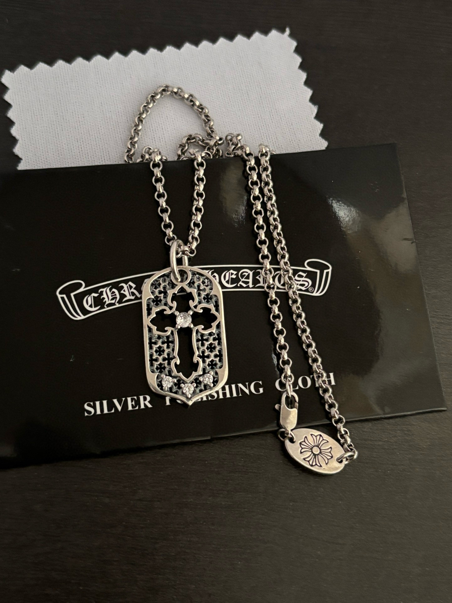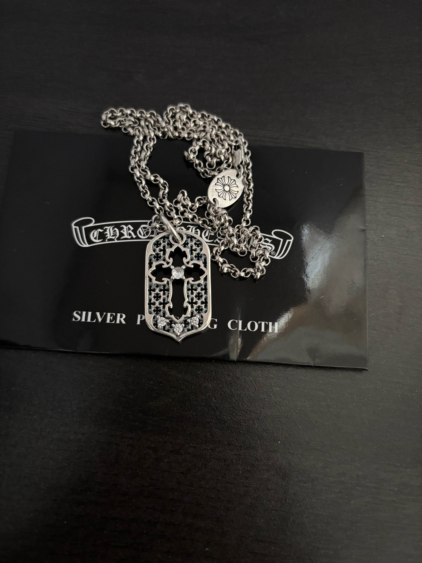 {"product":{ "goodsID":11055329, "skuid":2820010, "relatedCode":"", "cat": 1656, "brand": 448, "goodsIsShow":1, "price":54.00, "skuImage":"https://xcimg.szwego.com/img/ffc82eeb/20260108/i1767886865668_4155_0_0.jpg?imageMogr2/auto-orient/thumbnail/!650x650r/quality/100/format/jpg", "skuImage_small":"https://xcimg.szwego.com/img/ffc82eeb/20260108/i1767886865668_4155_0_0.jpg?imageMogr2/auto-orient/thumbnail/!440x440r/quality/100/format/jpg", "skuIsShow": 1, "Limited": 0, "LimitedMin": 0, "skuStore": 999, "skuSellCounter":0, "skuReviewCounter":0, "cateAttention":"", "cateAttentionUrl":"", "cateAttentionContent":"", "goodsName":"Chrome He rts", "goodsBrand":"Chrome Hearts", "category":"Necklaces", "sizeChartID":"0", "promotion":false, "option_image_text_hide":false, "declaration":"Necklaces" },"time":1776607189157}