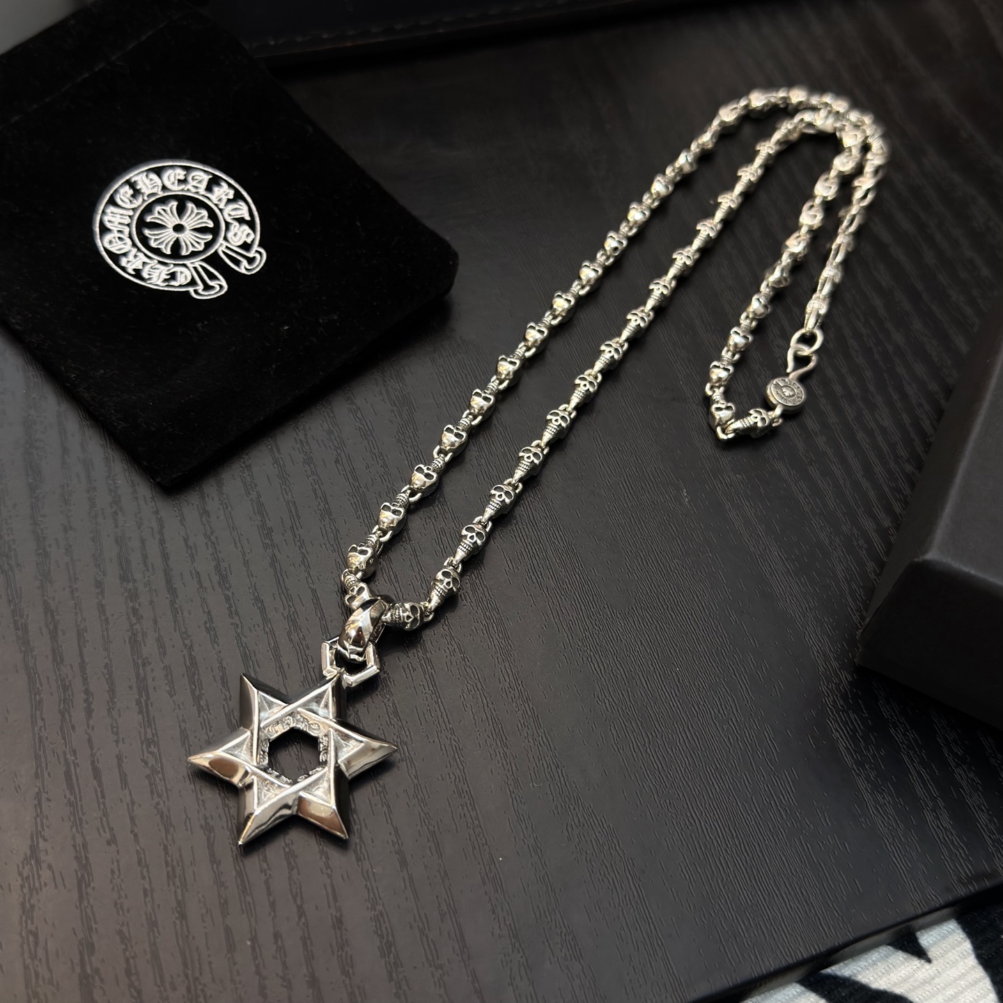{"product":{ "goodsID":10972251, "skuid":2665162, "relatedCode":"", "cat": 1656, "brand": 448, "goodsIsShow":1, "price":80.00, "skuImage":"https://xcimg.szwego.com/img/ffc82eeb/20251203/i1764725195537_5352_0_8.jpg?imageMogr2/auto-orient/thumbnail/!650x650r/quality/100/format/jpg", "skuImage_small":"https://xcimg.szwego.com/img/ffc82eeb/20251203/i1764725195537_5352_0_8.jpg?imageMogr2/auto-orient/thumbnail/!440x440r/quality/100/format/jpg", "skuIsShow": 1, "Limited": 0, "LimitedMin": 0, "skuStore": 999, "skuSellCounter":0, "skuReviewCounter":0, "cateAttention":"", "cateAttentionUrl":"", "cateAttentionContent":"", "goodsName":"Chrome Hearts", "goodsBrand":"Chrome Hearts", "category":"Necklaces", "sizeChartID":"0", "promotion":false, "option_image_text_hide":false, "declaration":"Necklaces" },"time":1772512496575}