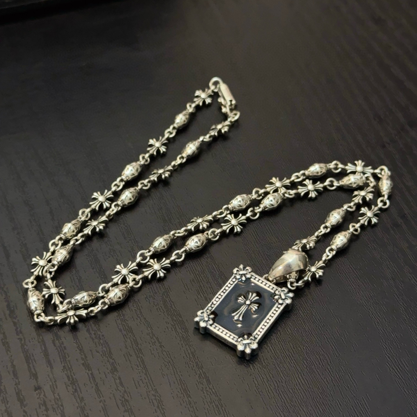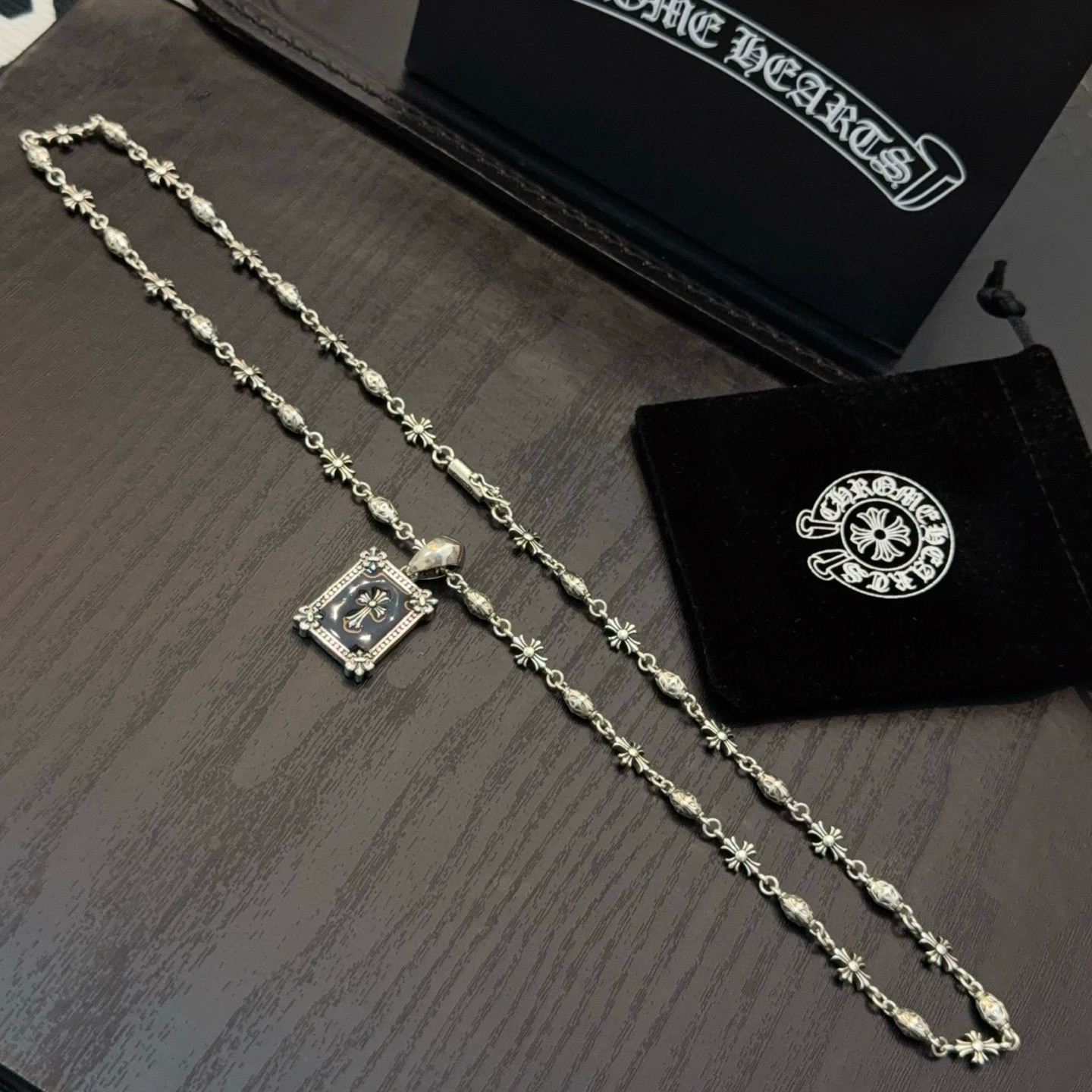 {"product":{ "goodsID":10988184, "skuid":2691404, "relatedCode":"", "cat": 1656, "brand": 448, "goodsIsShow":1, "price":76.00, "skuImage":"https://xcimg.szwego.com/img/8a2bf3b2/20260103/i1767456776437_346_0_0.jpg?imageMogr2/auto-orient/thumbnail/!650x650r/quality/100/format/jpg", "skuImage_small":"https://xcimg.szwego.com/img/8a2bf3b2/20260103/i1767456776437_346_0_0.jpg?imageMogr2/auto-orient/thumbnail/!440x440r/quality/100/format/jpg", "skuIsShow": 1, "Limited": 0, "LimitedMin": 0, "skuStore": 999, "skuSellCounter":0, "skuReviewCounter":0, "cateAttention":"", "cateAttentionUrl":"", "cateAttentionContent":"", "goodsName":"Chrome Hearts", "goodsBrand":"Chrome Hearts", "category":"Necklaces", "sizeChartID":"0", "promotion":false, "option_image_text_hide":false, "declaration":"Necklaces" },"time":1772485387284}
