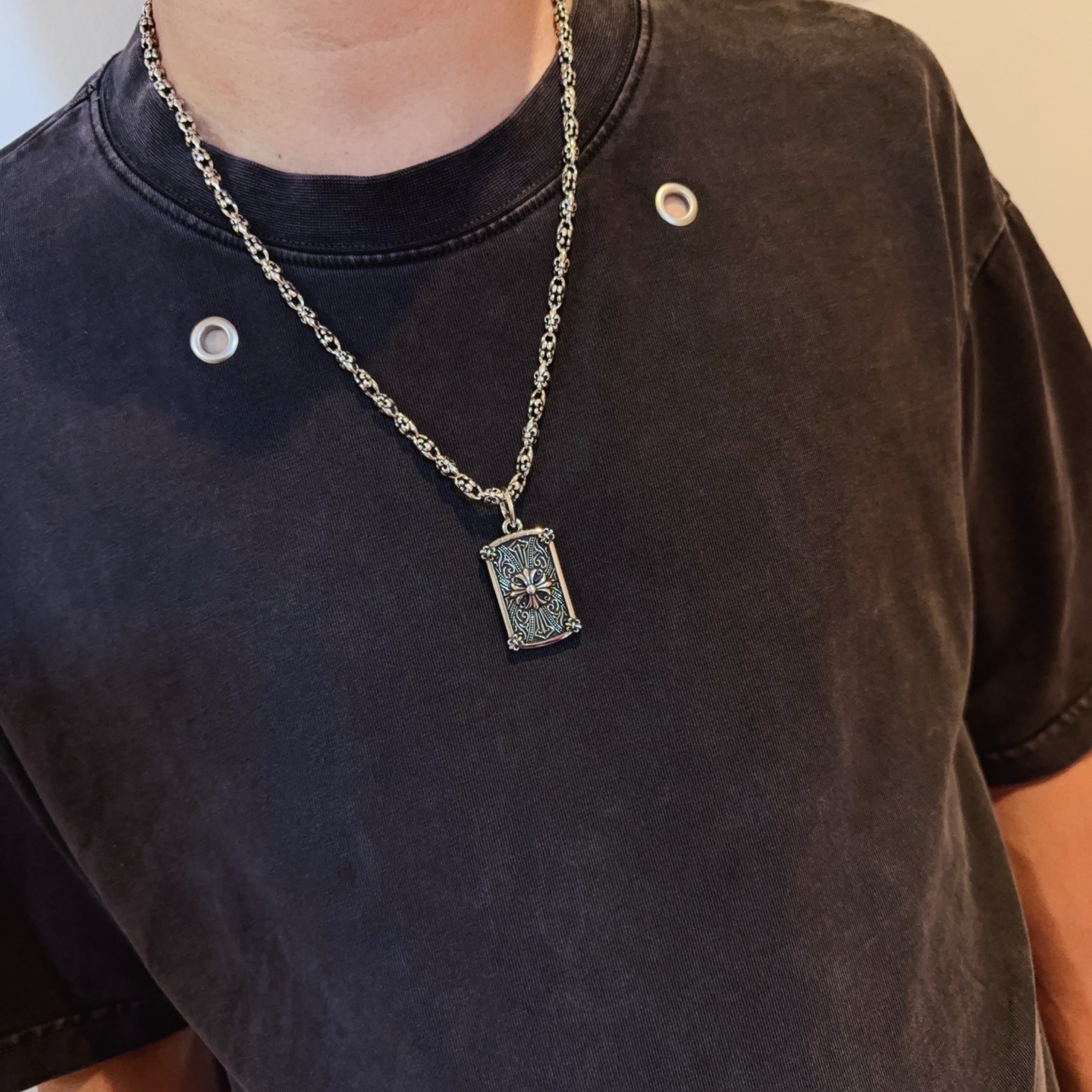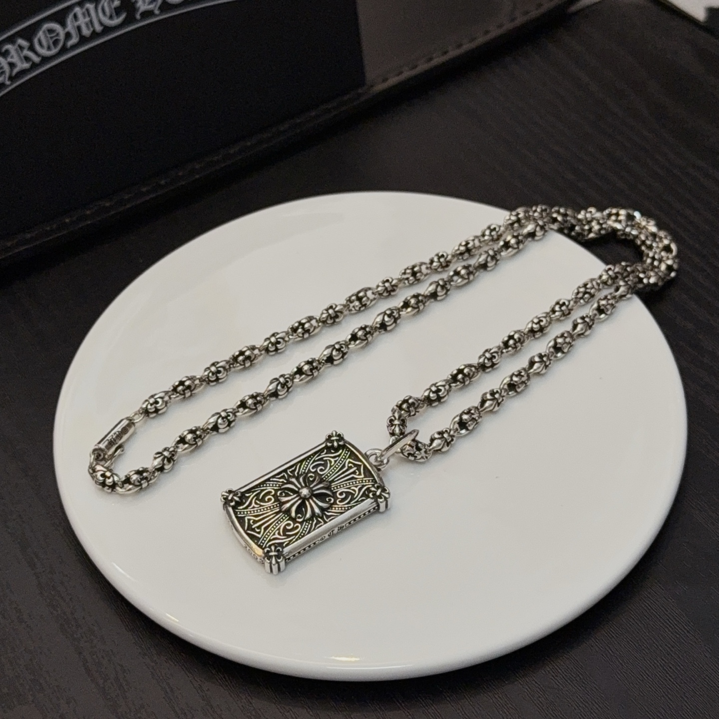 {"product":{ "goodsID":11052202, "skuid":2816883, "relatedCode":"", "cat": 1656, "brand": 448, "goodsIsShow":1, "price":80.00, "skuImage":"https://xcimg.szwego.com/img/8a2bf3b2/20251031/i1761929431966_9285_0_6.jpg?imageMogr2/auto-orient/thumbnail/!650x650r/quality/100/format/jpg", "skuImage_small":"https://xcimg.szwego.com/img/8a2bf3b2/20251031/i1761929431966_9285_0_6.jpg?imageMogr2/auto-orient/thumbnail/!440x440r/quality/100/format/jpg", "skuIsShow": 1, "Limited": 0, "LimitedMin": 0, "skuStore": 999, "skuSellCounter":0, "skuReviewCounter":0, "cateAttention":"", "cateAttentionUrl":"", "cateAttentionContent":"", "goodsName":"Chrome Hearts", "goodsBrand":"Chrome Hearts", "category":"Necklaces", "sizeChartID":"0", "promotion":false, "option_image_text_hide":false, "declaration":"Necklaces" },"time":1776478543566}