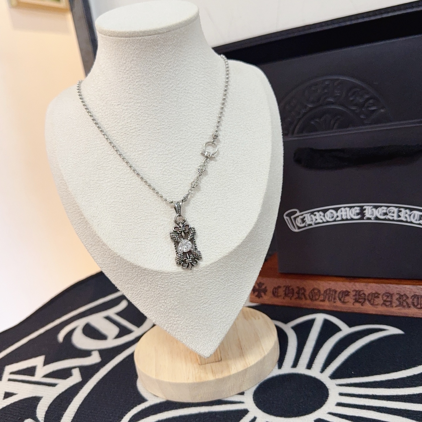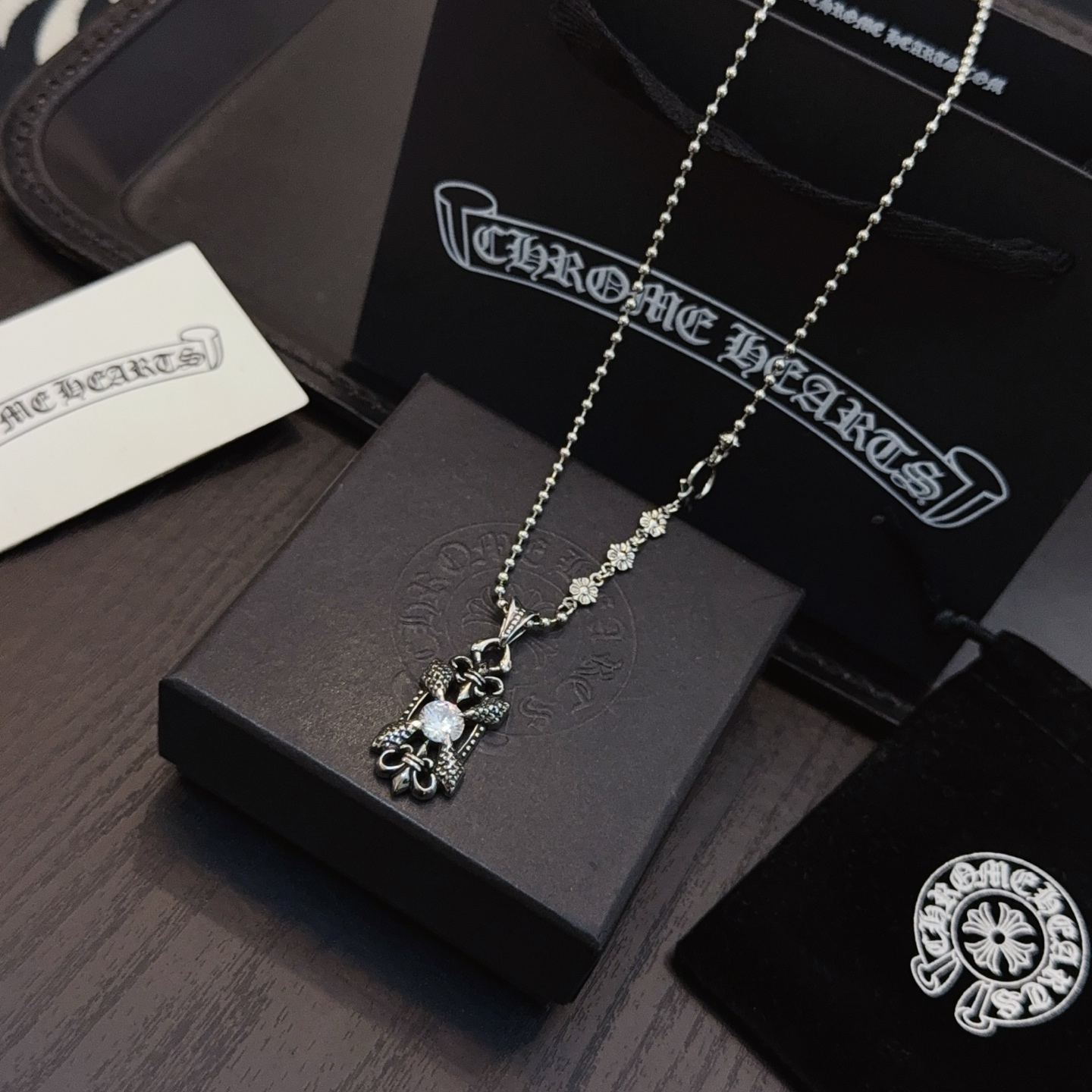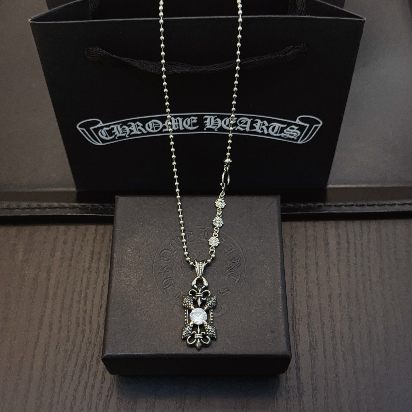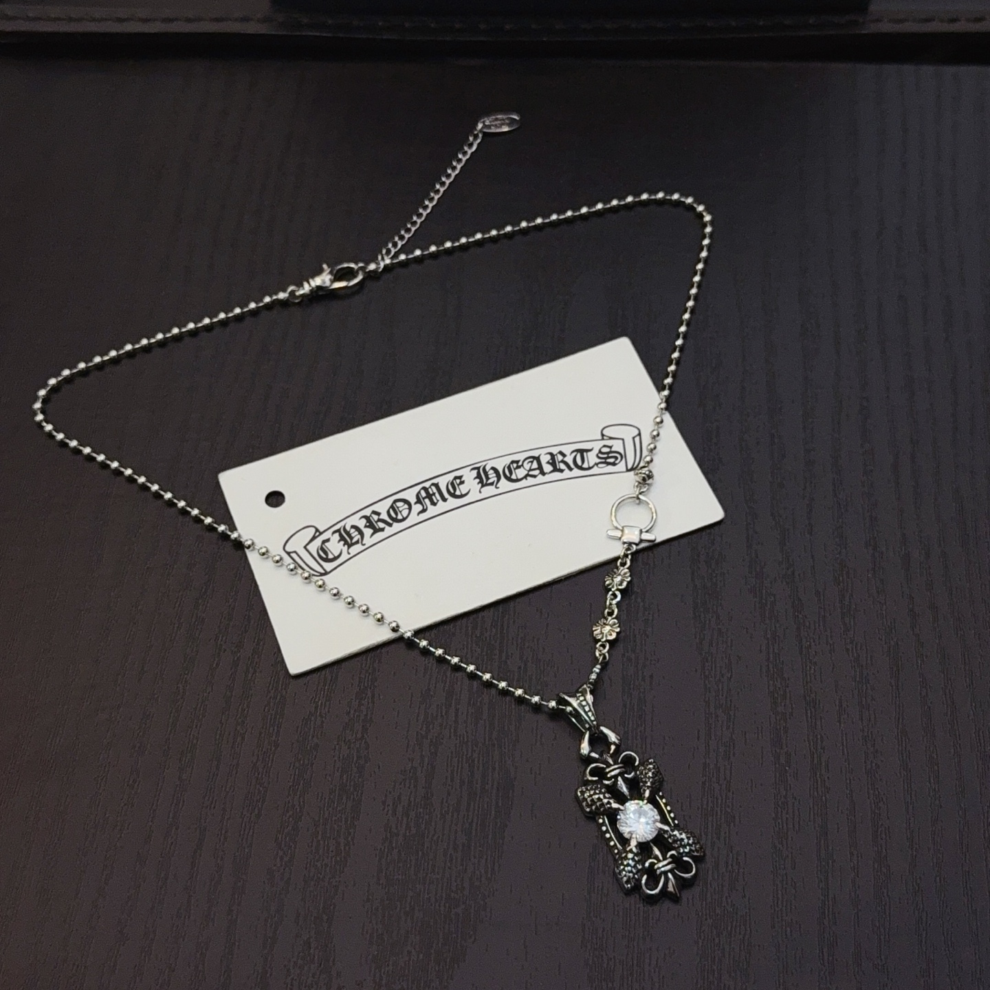 {"product":{ "goodsID":11053244, "skuid":2817925, "relatedCode":"", "cat": 1656, "brand": 448, "goodsIsShow":1, "price":69.00, "skuImage":"https://xcimg.szwego.com/img/ffc82eeb/20251115/a1763176484767_3275.jpg?imageMogr2/auto-orient/thumbnail/!650x650r/quality/100/format/jpg", "skuImage_small":"https://xcimg.szwego.com/img/ffc82eeb/20251115/a1763176484767_3275.jpg?imageMogr2/auto-orient/thumbnail/!440x440r/quality/100/format/jpg", "skuIsShow": 1, "Limited": 0, "LimitedMin": 0, "skuStore": 999, "skuSellCounter":0, "skuReviewCounter":0, "cateAttention":"", "cateAttentionUrl":"", "cateAttentionContent":"", "goodsName":"Chrome Hearts", "goodsBrand":"Chrome Hearts", "category":"Necklaces", "sizeChartID":"0", "promotion":false, "option_image_text_hide":false, "declaration":"Necklaces" },"time":1776612236996}