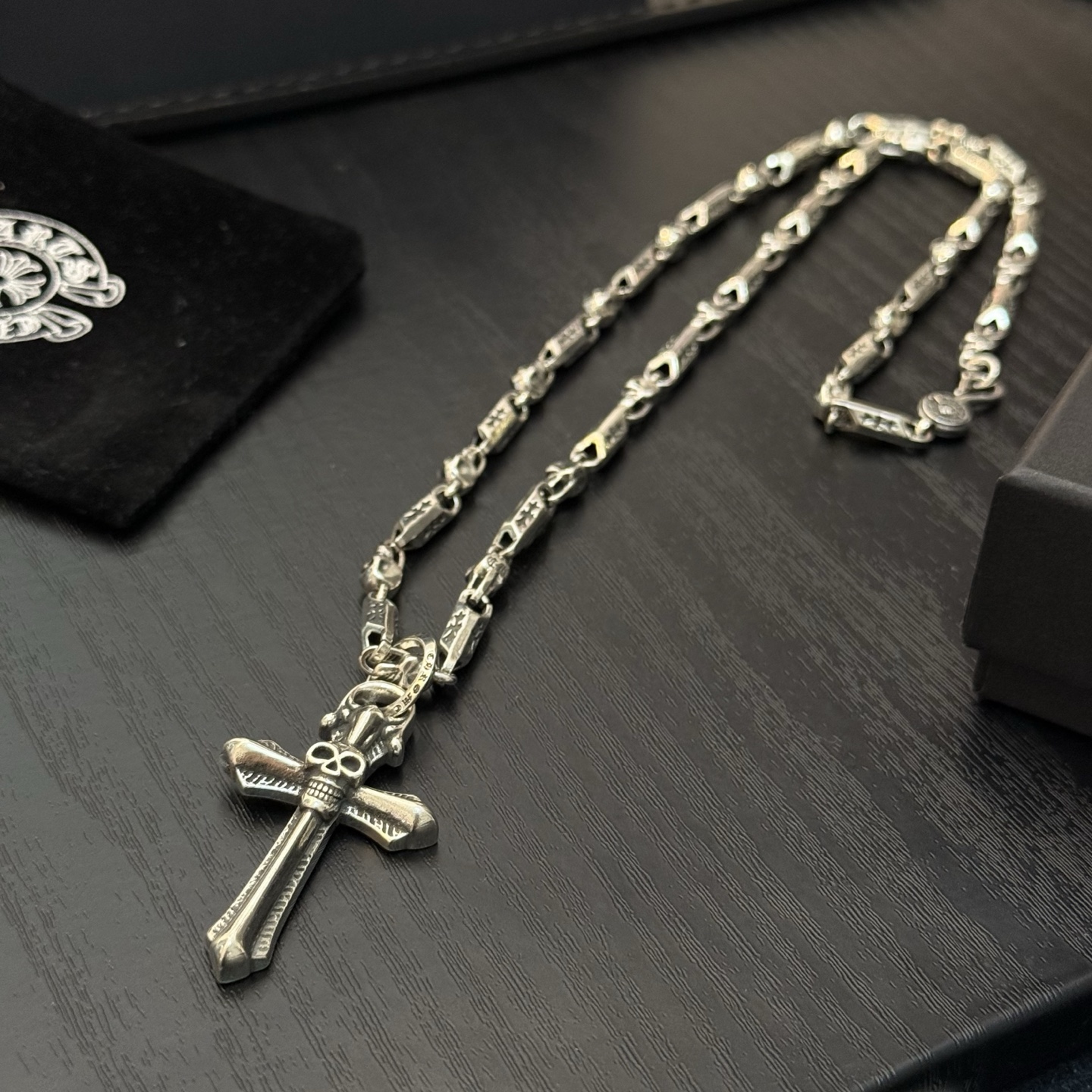 {"product":{ "goodsID":11054774, "skuid":2819455, "relatedCode":"", "cat": 1656, "brand": 448, "goodsIsShow":1, "price":80.00, "skuImage":"https://xcimg.szwego.com/img/8a2bf3b2/20251127/i1764260557448_4208_0_0.jpg?imageMogr2/auto-orient/thumbnail/!650x650r/quality/100/format/jpg", "skuImage_small":"https://xcimg.szwego.com/img/8a2bf3b2/20251127/i1764260557448_4208_0_0.jpg?imageMogr2/auto-orient/thumbnail/!440x440r/quality/100/format/jpg", "skuIsShow": 1, "Limited": 0, "LimitedMin": 0, "skuStore": 999, "skuSellCounter":0, "skuReviewCounter":0, "cateAttention":"", "cateAttentionUrl":"", "cateAttentionContent":"", "goodsName":"Chrome Hearts", "goodsBrand":"Chrome Hearts", "category":"Necklaces", "sizeChartID":"0", "promotion":false, "option_image_text_hide":false, "declaration":"Necklaces" },"time":1776612148059}