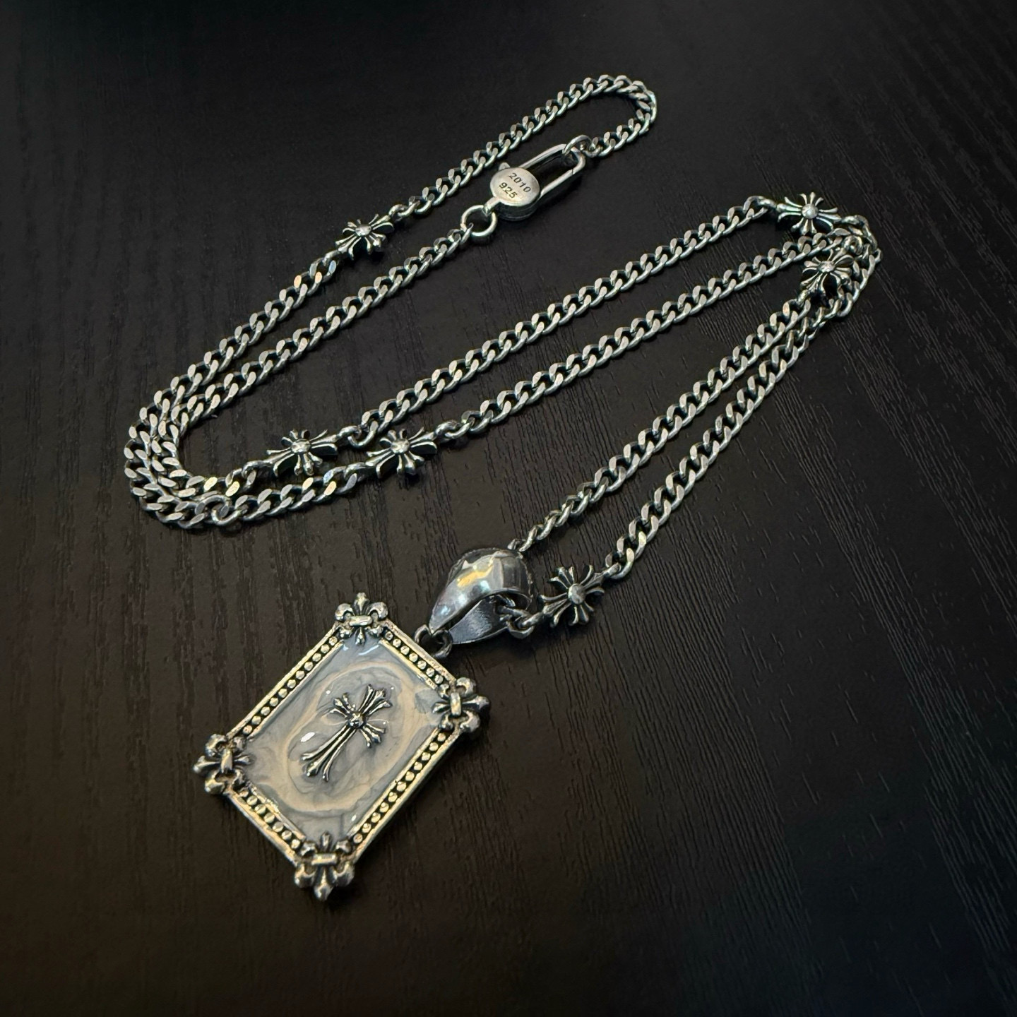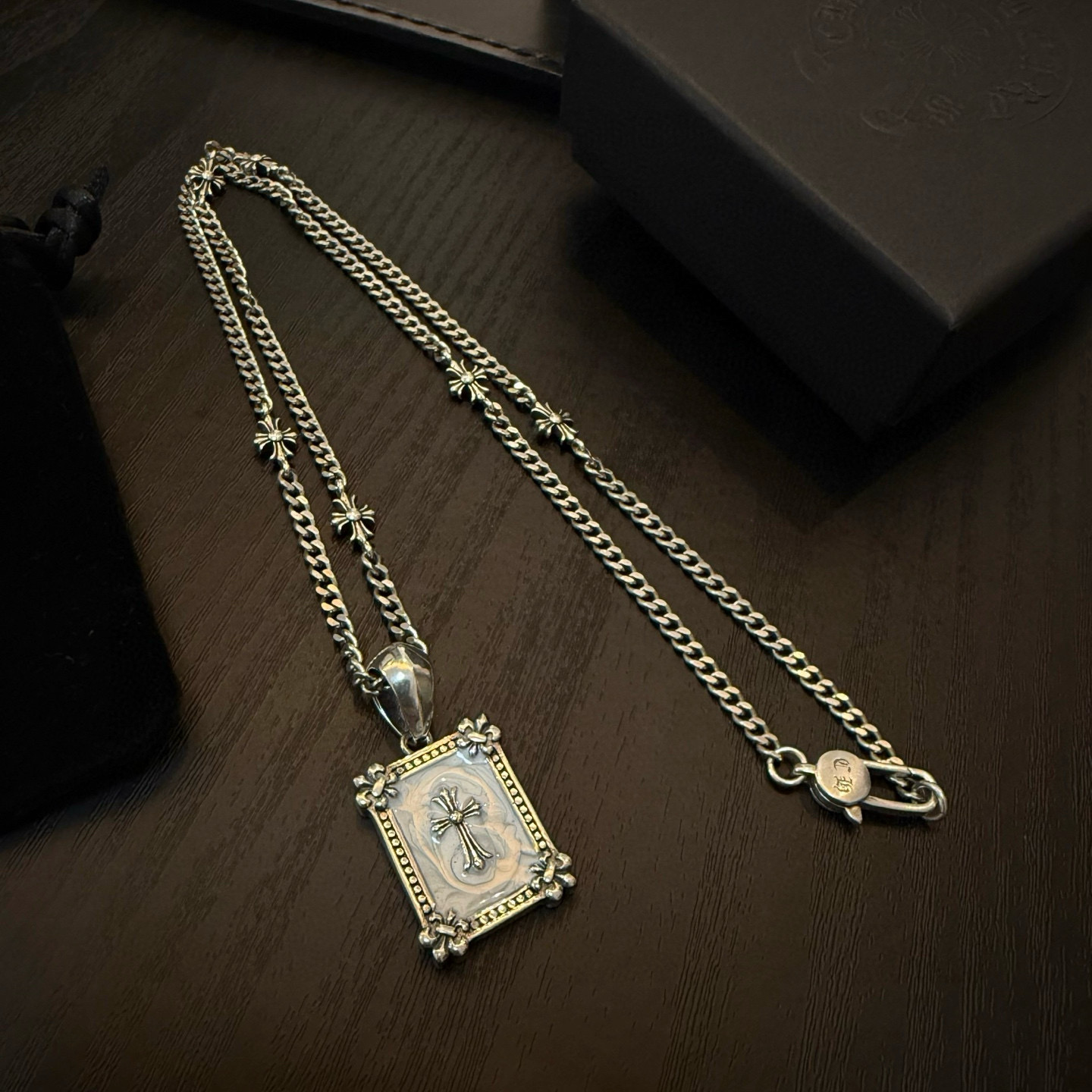 {"product":{ "goodsID":11056964, "skuid":2821645, "relatedCode":"", "cat": 1656, "brand": 448, "goodsIsShow":1, "price":76.00, "skuImage":"https://xcimg.szwego.com/img/ffc82eeb/20260125/i1769353196365_1526_0_0.jpg?imageMogr2/auto-orient/thumbnail/!650x650r/quality/100/format/jpg", "skuImage_small":"https://xcimg.szwego.com/img/ffc82eeb/20260125/i1769353196365_1526_0_0.jpg?imageMogr2/auto-orient/thumbnail/!440x440r/quality/100/format/jpg", "skuIsShow": 1, "Limited": 0, "LimitedMin": 0, "skuStore": 999, "skuSellCounter":0, "skuReviewCounter":0, "cateAttention":"", "cateAttentionUrl":"", "cateAttentionContent":"", "goodsName":"Chrome Hearts", "goodsBrand":"Chrome Hearts", "category":"Necklaces", "sizeChartID":"0", "promotion":false, "option_image_text_hide":false, "declaration":"Necklaces" },"time":1776607100859}