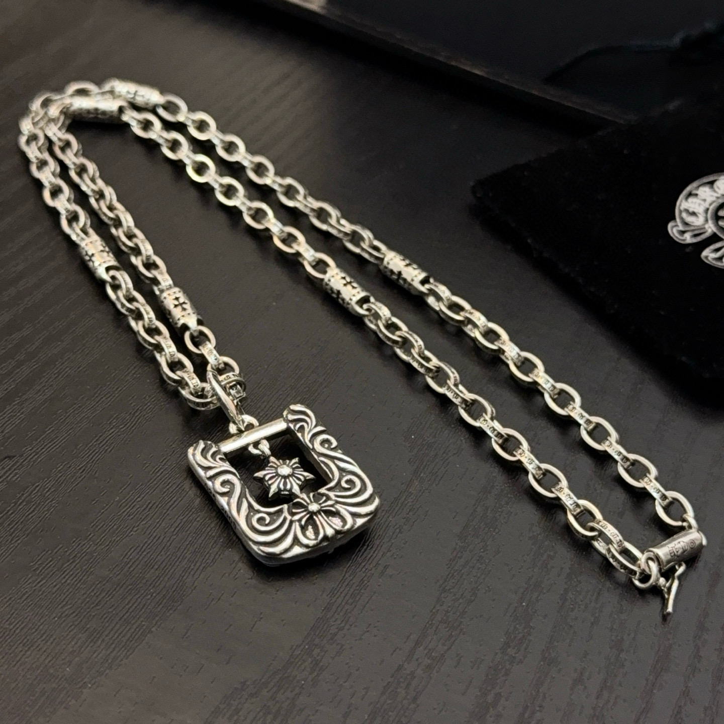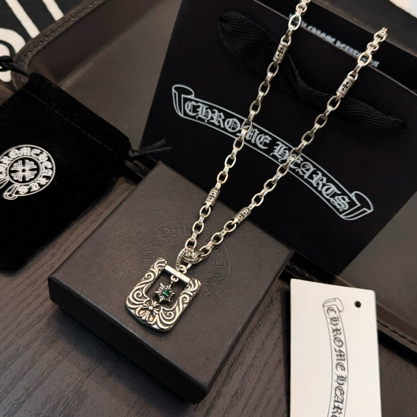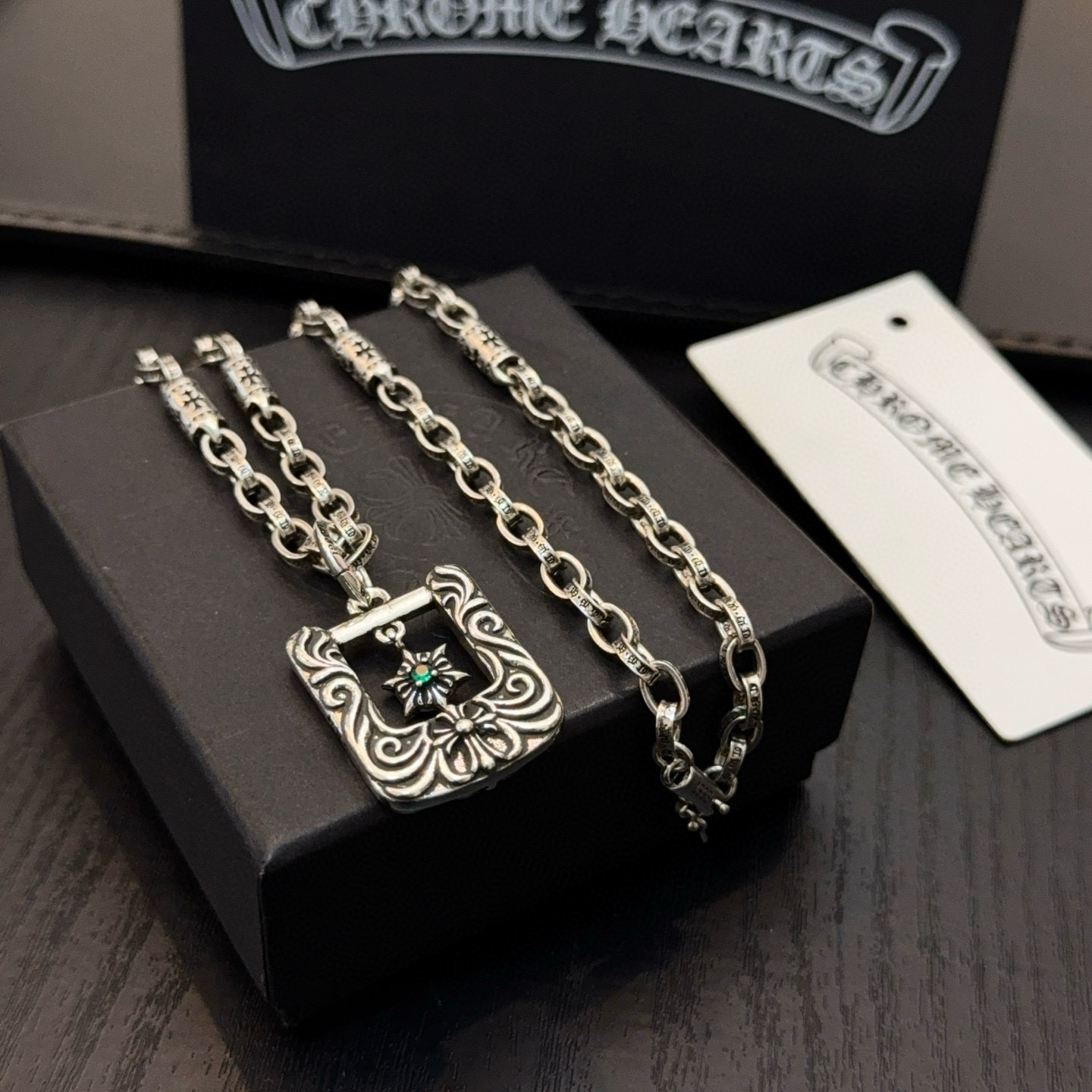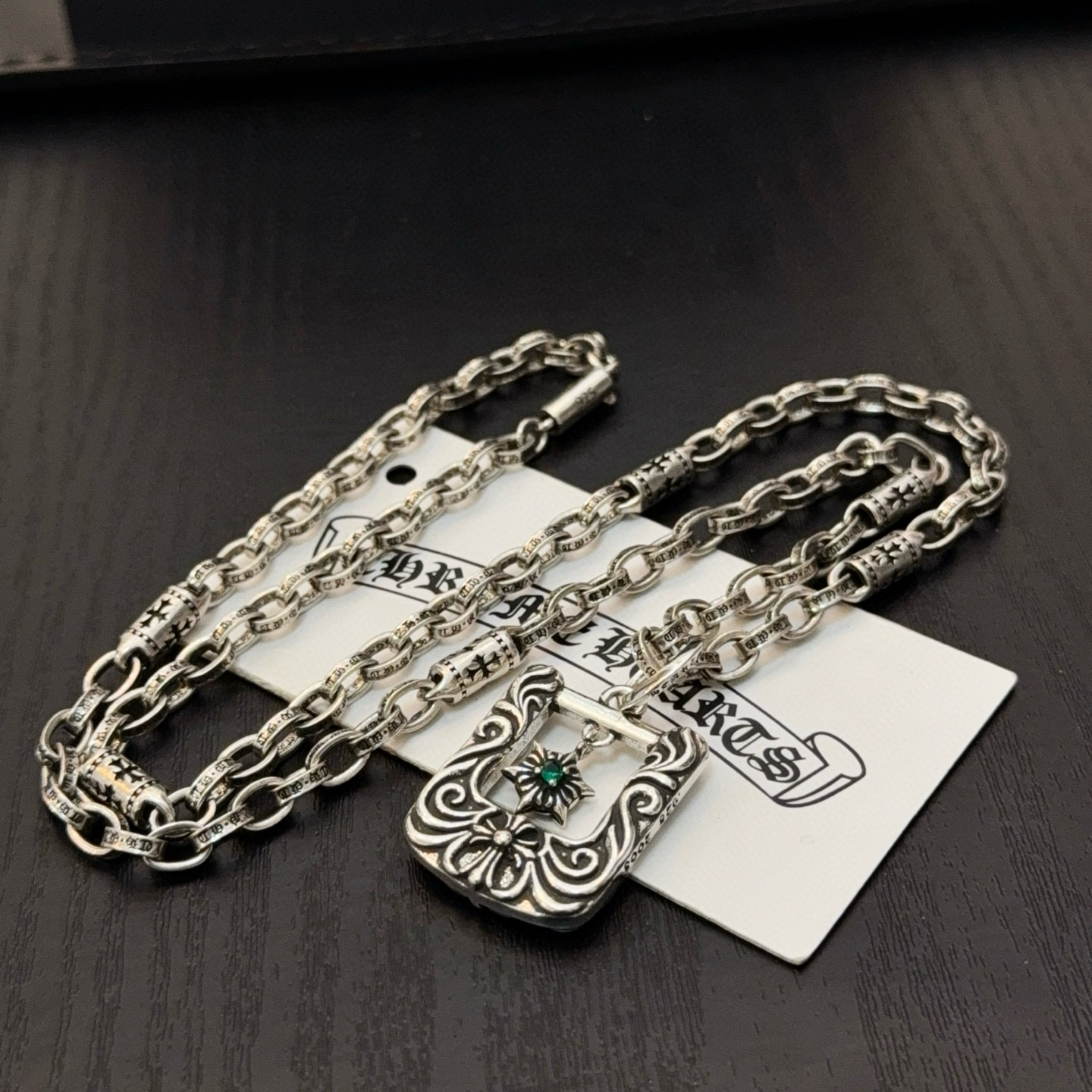 {"product":{ "goodsID":11057375, "skuid":2822056, "relatedCode":"", "cat": 1656, "brand": 448, "goodsIsShow":1, "price":80.00, "skuImage":"https://xcimg.szwego.com/img/8a2bf3b2/20260129/i1769704238995_3211_0_0.jpg?imageMogr2/auto-orient/thumbnail/!650x650r/quality/100/format/jpg", "skuImage_small":"https://xcimg.szwego.com/img/8a2bf3b2/20260129/i1769704238995_3211_0_0.jpg?imageMogr2/auto-orient/thumbnail/!440x440r/quality/100/format/jpg", "skuIsShow": 1, "Limited": 0, "LimitedMin": 0, "skuStore": 999, "skuSellCounter":0, "skuReviewCounter":0, "cateAttention":"", "cateAttentionUrl":"", "cateAttentionContent":"", "goodsName":"Chrome Hearts", "goodsBrand":"Chrome Hearts", "category":"Necklaces", "sizeChartID":"0", "promotion":false, "option_image_text_hide":false, "declaration":"Necklaces" },"time":1776602373527}