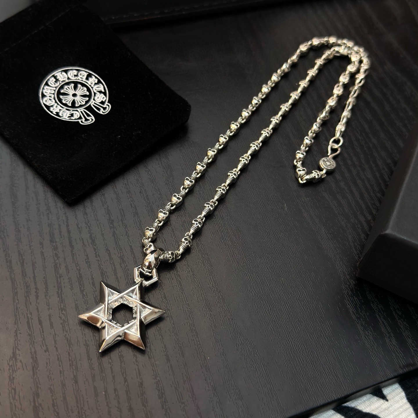 {"product":{ "goodsID":11057382, "skuid":2822063, "relatedCode":"", "cat": 1656, "brand": 448, "goodsIsShow":1, "price":80.00, "skuImage":"https://xcimg.szwego.com/img/8a2bf3b2/20260129/i1769704617384_5152_0_0.jpg?imageMogr2/auto-orient/thumbnail/!650x650r/quality/100/format/jpg", "skuImage_small":"https://xcimg.szwego.com/img/8a2bf3b2/20260129/i1769704617384_5152_0_0.jpg?imageMogr2/auto-orient/thumbnail/!440x440r/quality/100/format/jpg", "skuIsShow": 1, "Limited": 0, "LimitedMin": 0, "skuStore": 999, "skuSellCounter":0, "skuReviewCounter":0, "cateAttention":"", "cateAttentionUrl":"", "cateAttentionContent":"", "goodsName":"Chrome Hearts", "goodsBrand":"Chrome Hearts", "category":"Necklaces", "sizeChartID":"0", "promotion":false, "option_image_text_hide":false, "declaration":"Necklaces" },"time":1776445862701}