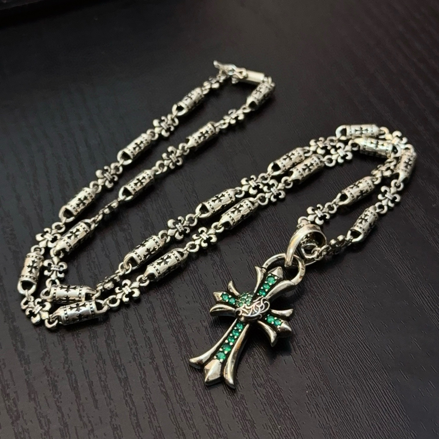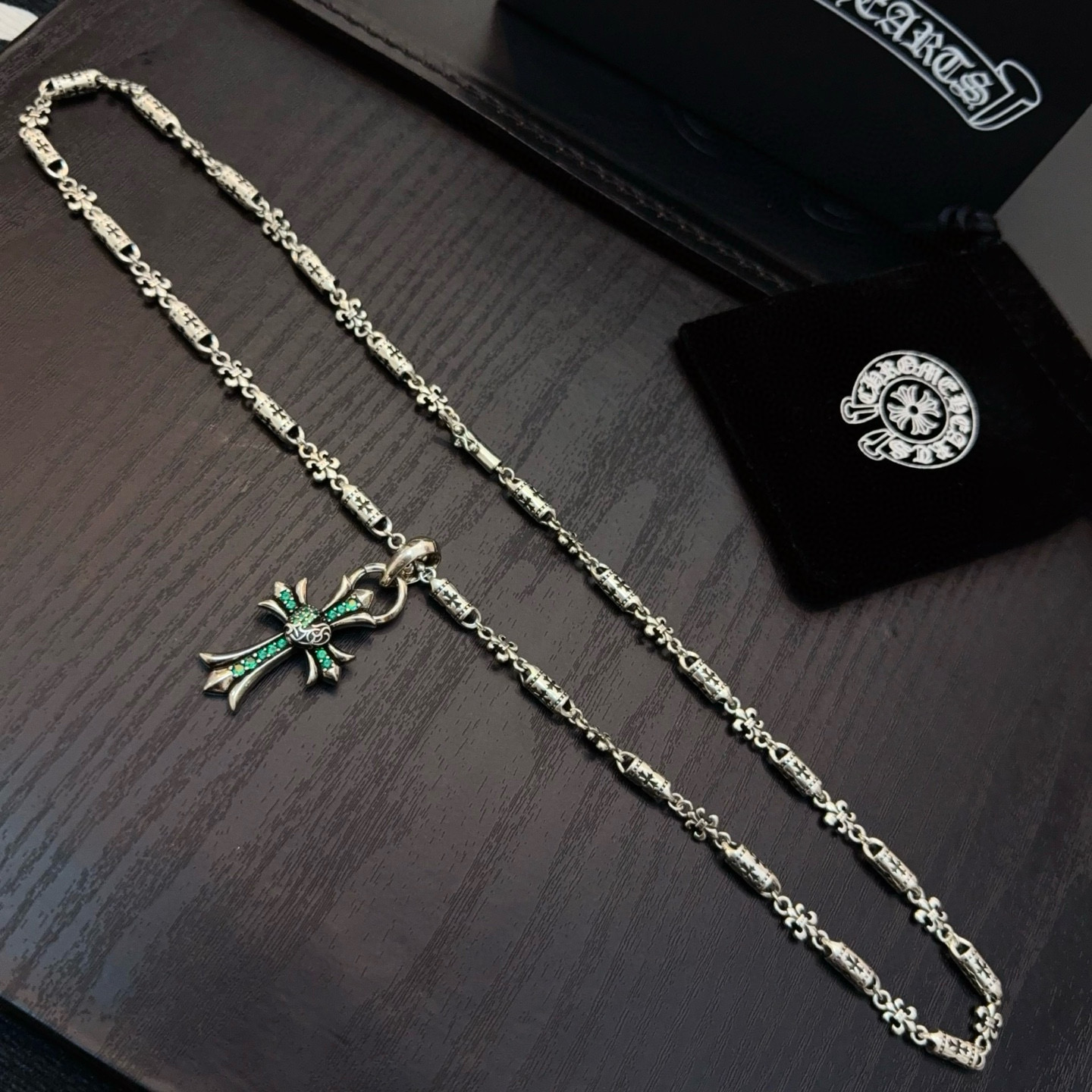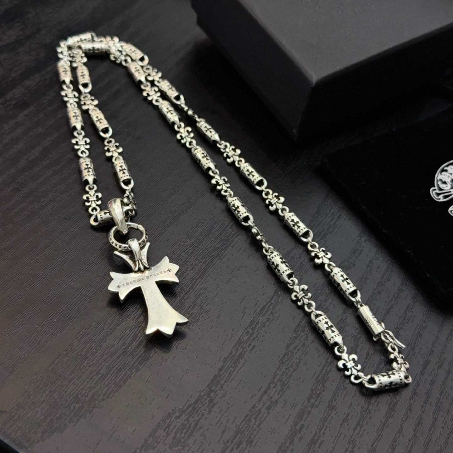 {"product":{ "goodsID":11057819, "skuid":2822500, "relatedCode":"", "cat": 1656, "brand": 448, "goodsIsShow":1, "price":80.00, "skuImage":"https://xcimg.szwego.com/img/ffc82eeb/20260203/i1770049757563_2154_0_0.jpg?imageMogr2/auto-orient/thumbnail/!650x650r/quality/100/format/jpg", "skuImage_small":"https://xcimg.szwego.com/img/ffc82eeb/20260203/i1770049757563_2154_0_0.jpg?imageMogr2/auto-orient/thumbnail/!440x440r/quality/100/format/jpg", "skuIsShow": 1, "Limited": 0, "LimitedMin": 0, "skuStore": 999, "skuSellCounter":0, "skuReviewCounter":0, "cateAttention":"", "cateAttentionUrl":"", "cateAttentionContent":"", "goodsName":"Chrome Hearts", "goodsBrand":"Chrome Hearts", "category":"Necklaces", "sizeChartID":"0", "promotion":false, "option_image_text_hide":false, "declaration":"Necklaces" },"time":1776602370146}