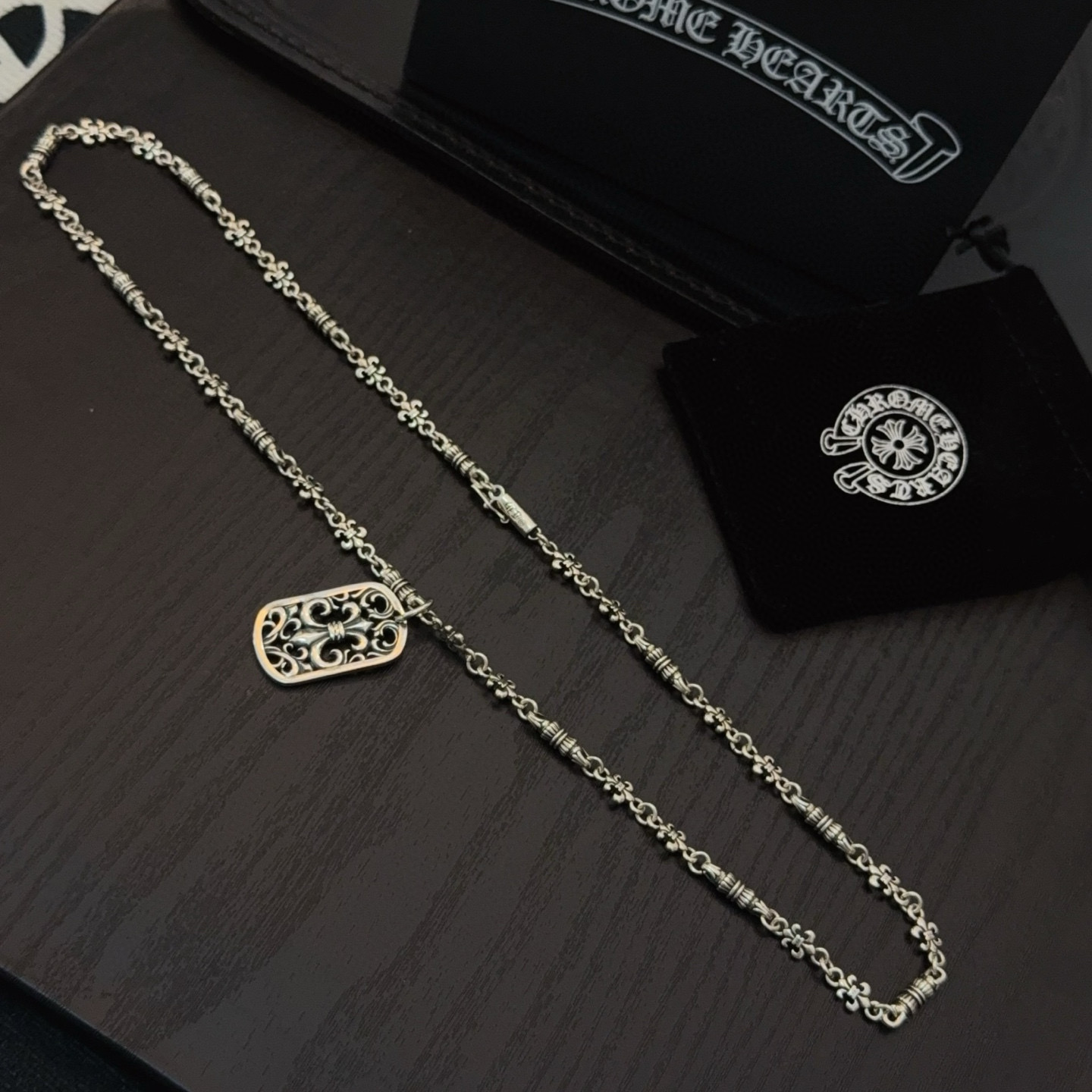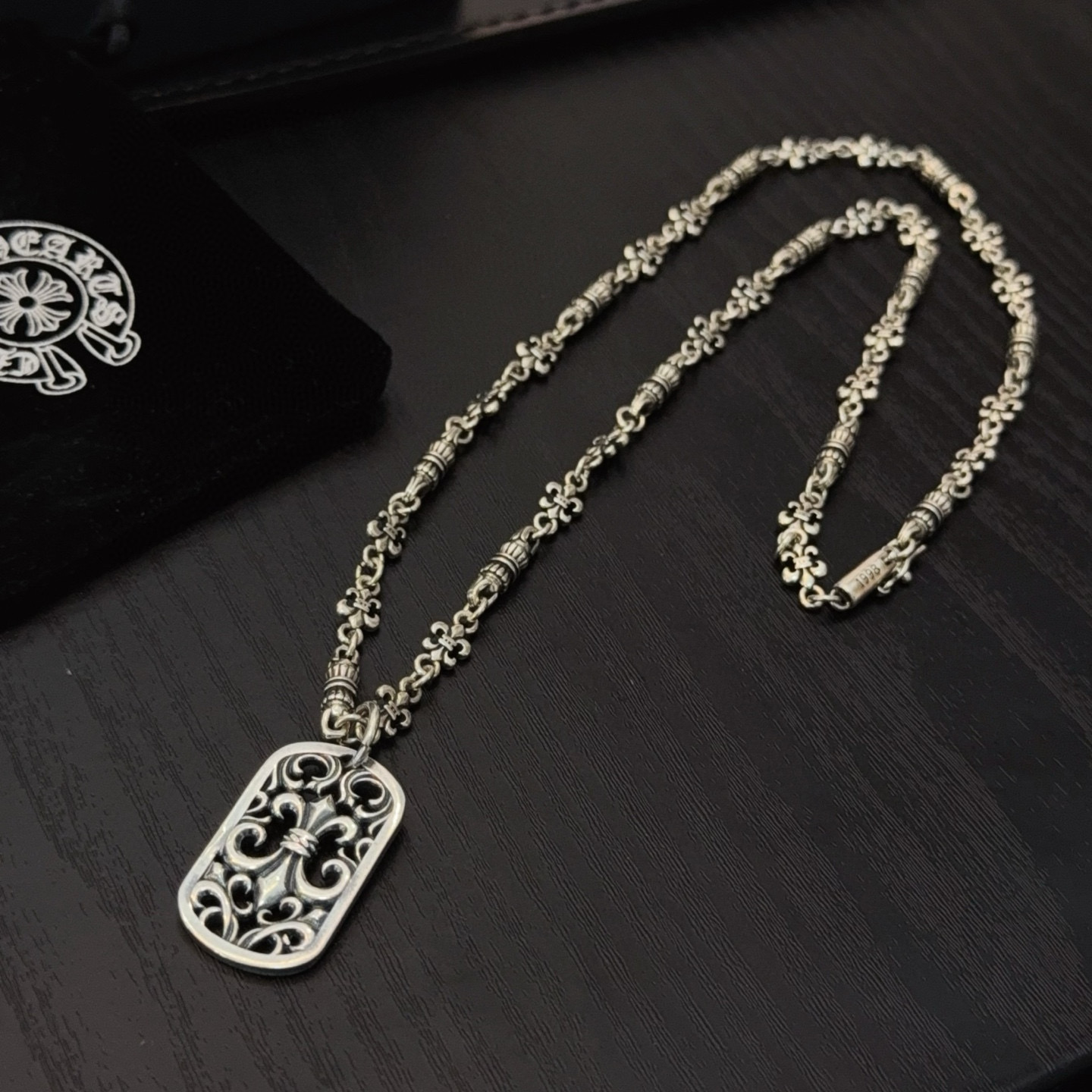 {"product":{ "goodsID":11057827, "skuid":2822508, "relatedCode":"", "cat": 1656, "brand": 448, "goodsIsShow":1, "price":80.00, "skuImage":"https://xcimg.szwego.com/img/ffc82eeb/20260203/i1770050090111_1272_0_0.jpg?imageMogr2/auto-orient/thumbnail/!650x650r/quality/100/format/jpg", "skuImage_small":"https://xcimg.szwego.com/img/ffc82eeb/20260203/i1770050090111_1272_0_0.jpg?imageMogr2/auto-orient/thumbnail/!440x440r/quality/100/format/jpg", "skuIsShow": 1, "Limited": 0, "LimitedMin": 0, "skuStore": 999, "skuSellCounter":0, "skuReviewCounter":0, "cateAttention":"", "cateAttentionUrl":"", "cateAttentionContent":"", "goodsName":"Chrome Hearts", "goodsBrand":"Chrome Hearts", "category":"Necklaces", "sizeChartID":"0", "promotion":false, "option_image_text_hide":false, "declaration":"Necklaces" },"time":1776446169457}