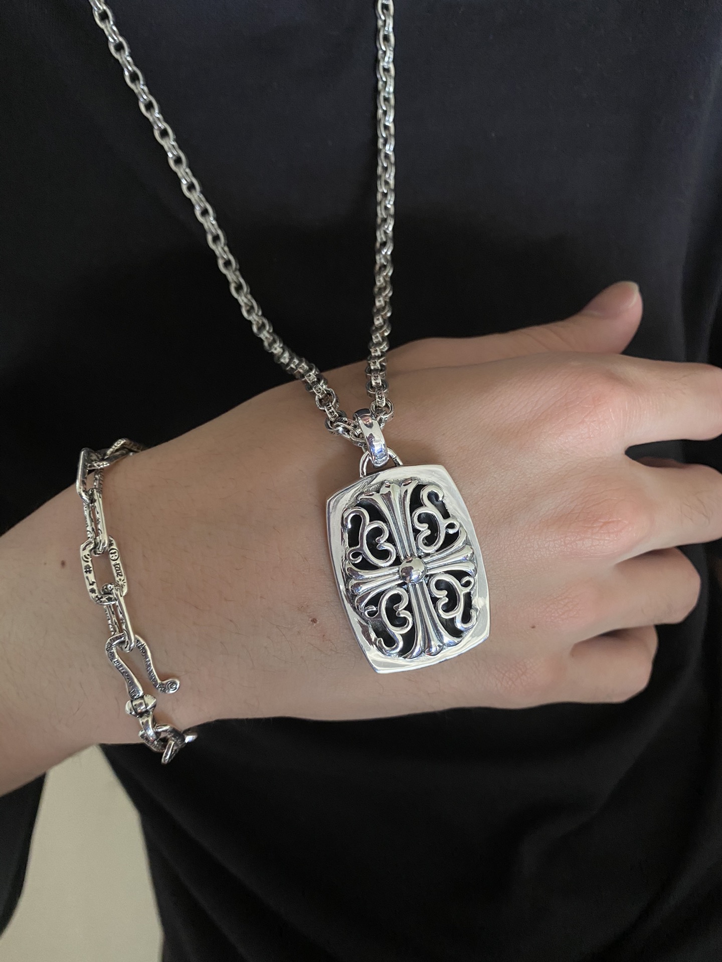 {"product":{ "goodsID":11058370, "skuid":2823051, "relatedCode":"", "cat": 1656, "brand": 448, "goodsIsShow":1, "price":69.00, "skuImage":"https://xcimg.szwego.com/20220411/i1649656771_5730_0.jpg?imageMogr2/auto-orient/thumbnail/!650x650r/quality/100/format/jpg", "skuImage_small":"https://xcimg.szwego.com/20220411/i1649656771_5730_0.jpg?imageMogr2/auto-orient/thumbnail/!440x440r/quality/100/format/jpg", "skuIsShow": 1, "Limited": 0, "LimitedMin": 0, "skuStore": 999, "skuSellCounter":0, "skuReviewCounter":0, "cateAttention":"", "cateAttentionUrl":"", "cateAttentionContent":"", "goodsName":"Chrome Hearts", "goodsBrand":"Chrome Hearts", "category":"Necklaces", "sizeChartID":"0", "promotion":false, "option_image_text_hide":false, "declaration":"Necklaces" },"time":1776597402467}