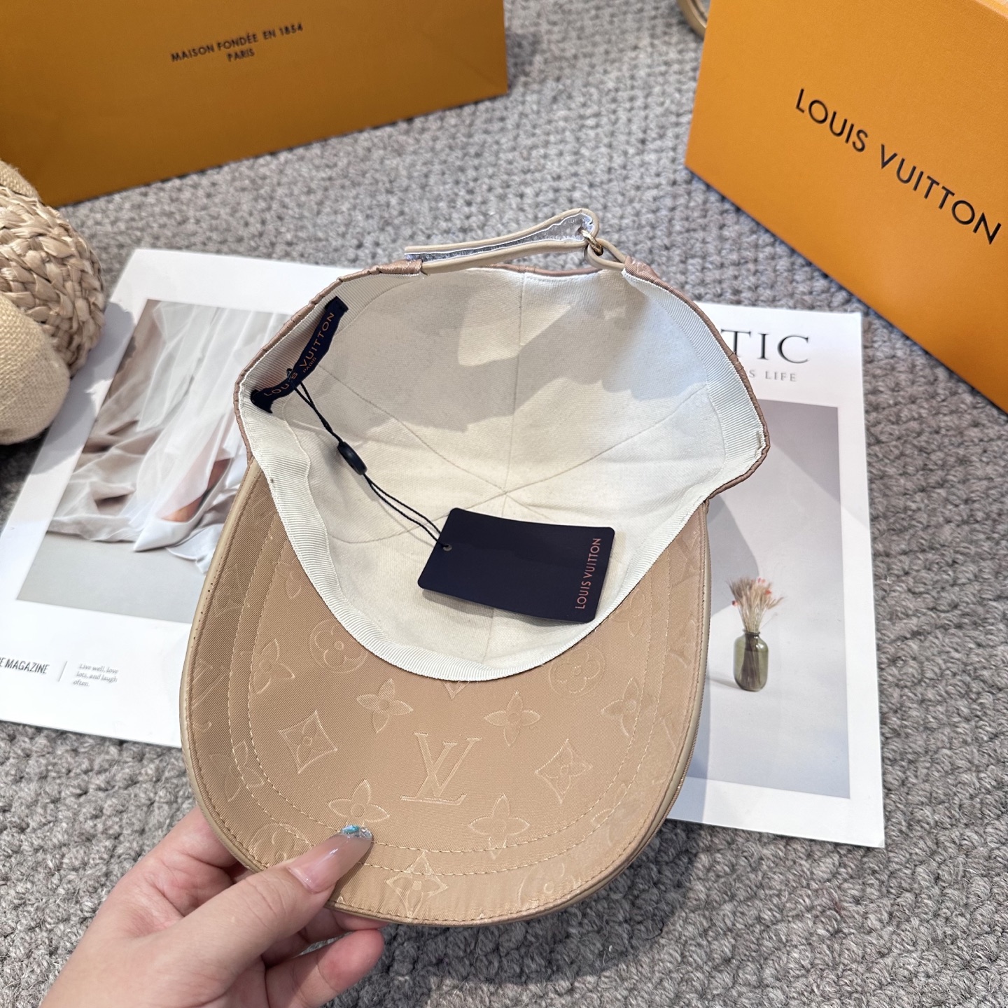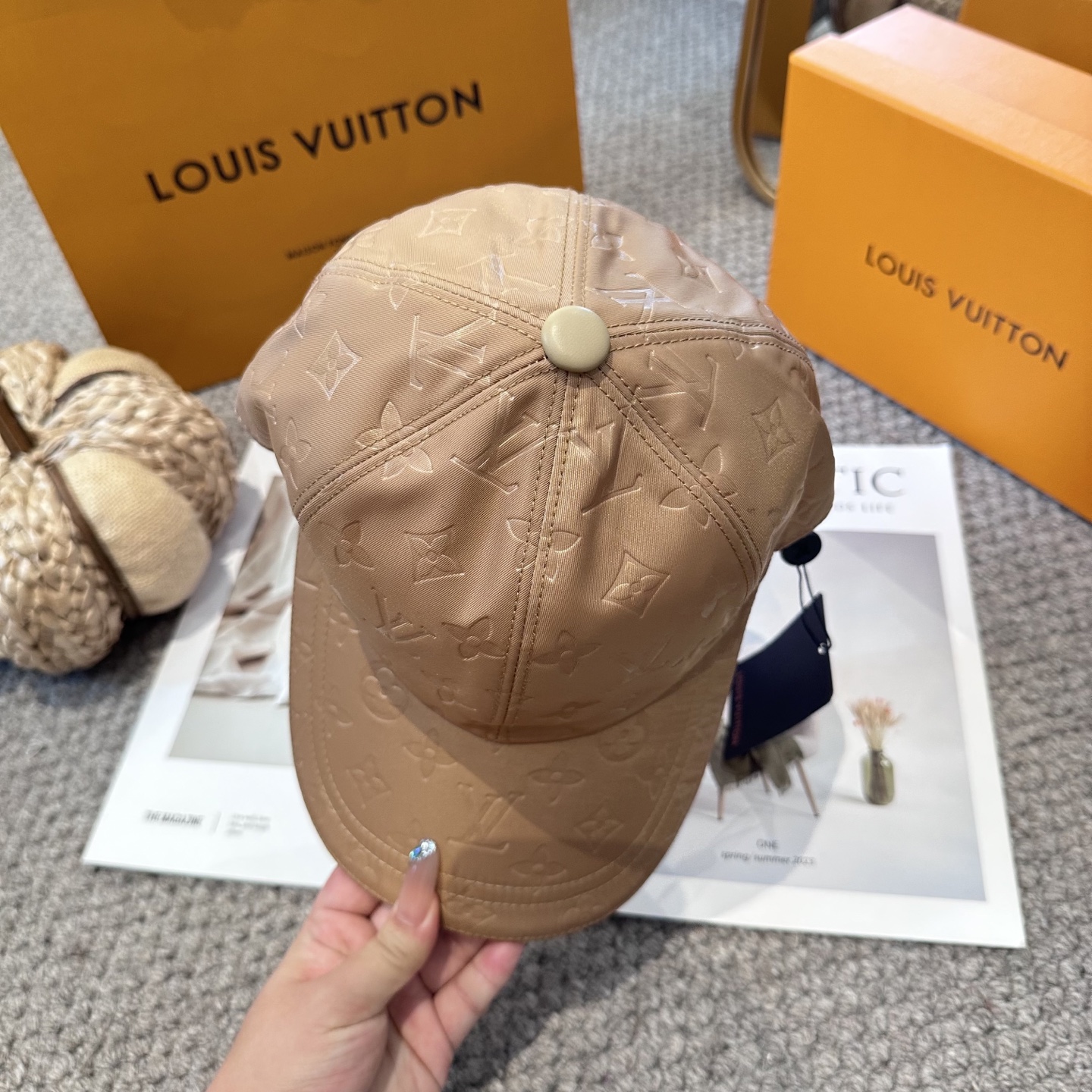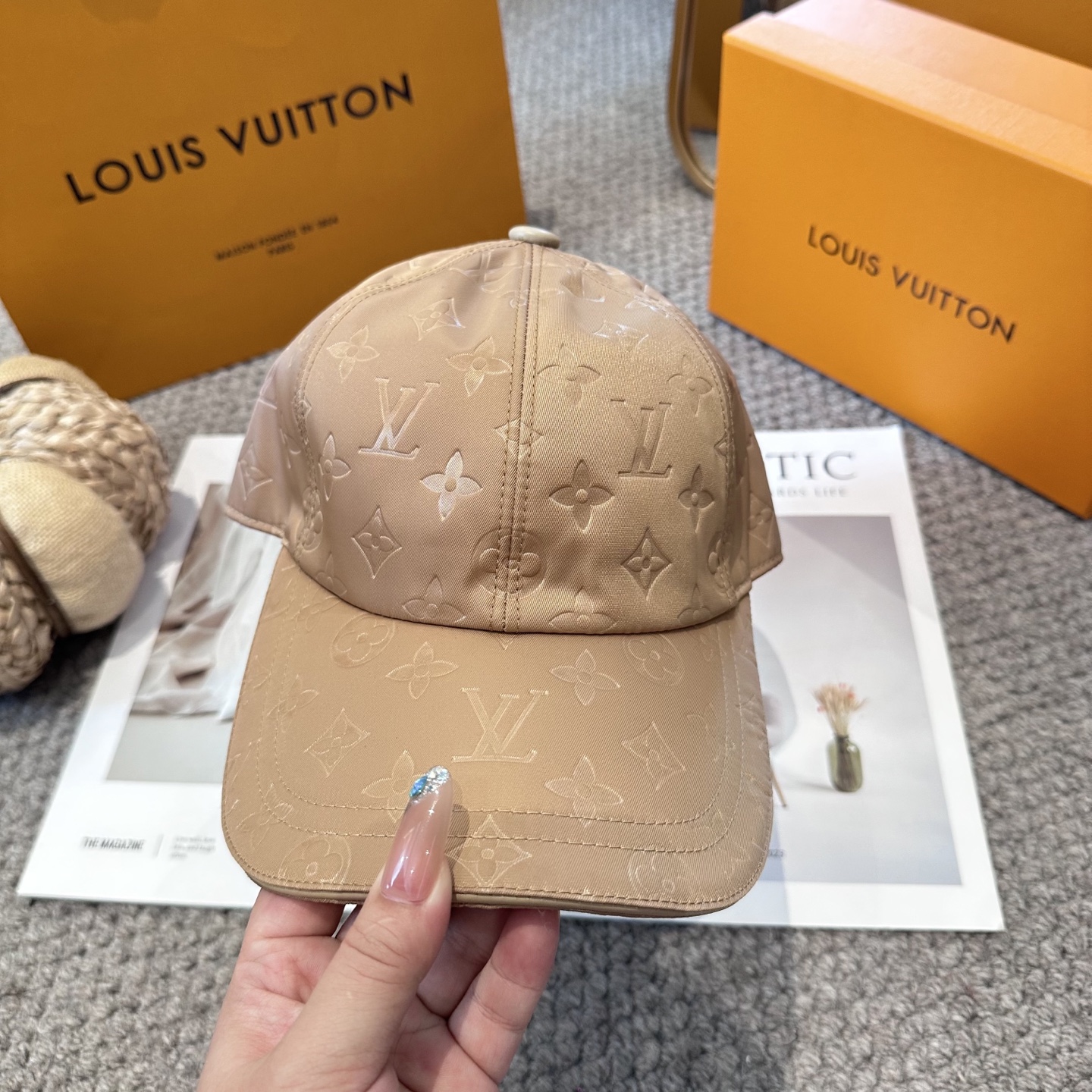 {"product":{ "goodsID":10994124, "skuid":2703367, "relatedCode":"", "cat": 1669, "brand": 429, "goodsIsShow":1, "price":25.00, "skuImage":"https://xcimg.szwego.com/img/acc58fe6/20250830/i1756558546858_3510_0_0.jpg?imageMogr2/auto-orient/thumbnail/!650x650r/quality/100/format/jpg", "skuImage_small":"https://xcimg.szwego.com/img/acc58fe6/20250830/i1756558546858_3510_0_0.jpg?imageMogr2/auto-orient/thumbnail/!440x440r/quality/100/format/jpg", "skuIsShow": 1, "Limited": 0, "LimitedMin": 0, "skuStore": 999, "skuSellCounter":0, "skuReviewCounter":0, "cateAttention":"", "cateAttentionUrl":"", "cateAttentionContent":"", "goodsName":"LouisVuitton", "goodsBrand":"LOUIS VUITTON", "category":"Baseball Cap", "sizeChartID":"0", "promotion":false, "option_image_text_hide":false, "declaration":"Baseball Cap" },"time":1772472721240}