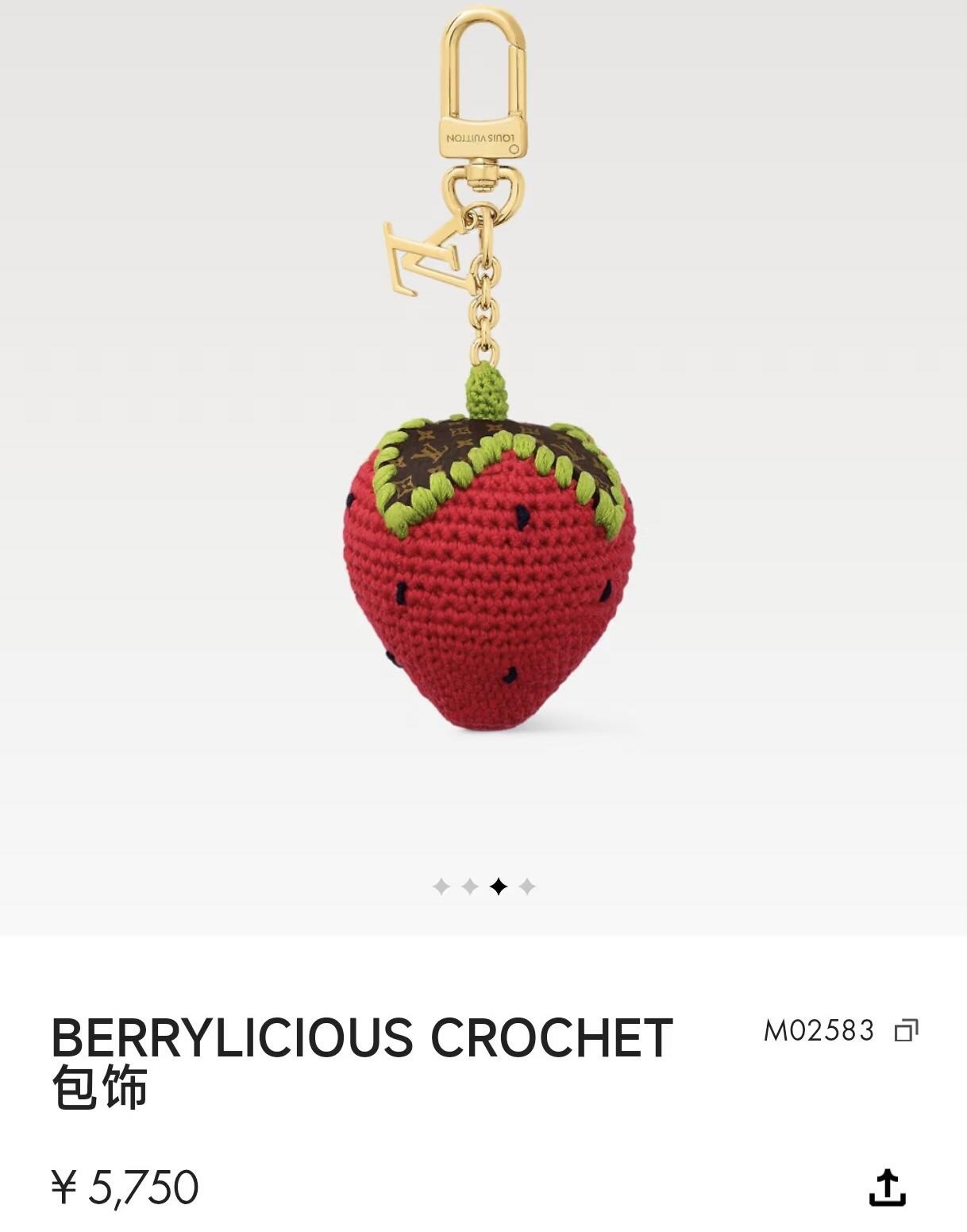 {"product":{ "goodsID":11055848, "skuid":2820529, "relatedCode":"", "cat": 1657, "brand": 429, "goodsIsShow":1, "price":36.00, "skuImage":"https://xcimg.szwego.com/img/49da24b5/20260112/i1768201866413_4322_0_0.jpg?imageMogr2/auto-orient/thumbnail/!650x650r/quality/100/format/jpg", "skuImage_small":"https://xcimg.szwego.com/img/49da24b5/20260112/i1768201866413_4322_0_0.jpg?imageMogr2/auto-orient/thumbnail/!440x440r/quality/100/format/jpg", "skuIsShow": 1, "Limited": 0, "LimitedMin": 0, "skuStore": 999, "skuSellCounter":0, "skuReviewCounter":0, "cateAttention":"", "cateAttentionUrl":"", "cateAttentionContent":"", "goodsName":"M02583 LOUIS Vuitton BERRYLICIOUS CROCHET Berryicious Crochet Monogram", "goodsBrand":"LOUIS VUITTON", "category":"Earrings", "sizeChartID":"0", "promotion":false, "option_image_text_hide":false, "declaration":"Earrings" },"time":1776613514722}