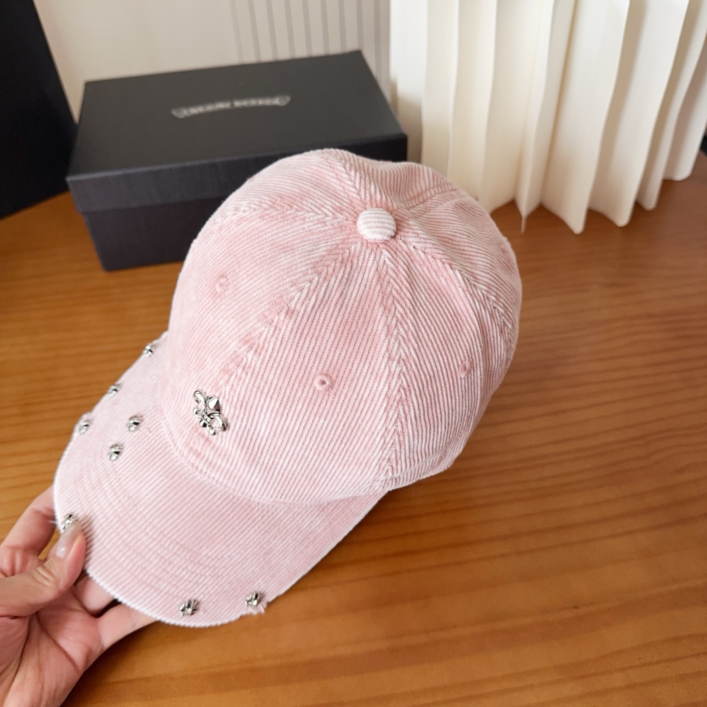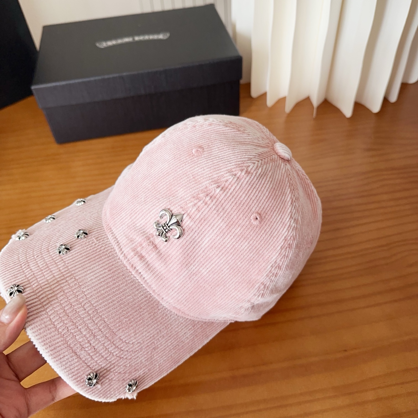 {"product":{ "goodsID":10933595, "skuid":2511736, "relatedCode":"", "cat": 1669, "brand": 448, "goodsIsShow":1, "price":25.00, "skuImage":"https://xcimg.szwego.com/img/44358ccb/20250914/i1757784196656_4894_0_0.jpg?imageMogr2/auto-orient/thumbnail/!650x650r/quality/100/format/jpg", "skuImage_small":"https://xcimg.szwego.com/img/44358ccb/20250914/i1757784196656_4894_0_0.jpg?imageMogr2/auto-orient/thumbnail/!440x440r/quality/100/format/jpg", "skuIsShow": 1, "Limited": 0, "LimitedMin": 0, "skuStore": 999, "skuSellCounter":0, "skuReviewCounter":0, "cateAttention":"", "cateAttentionUrl":"", "cateAttentionContent":"", "goodsName":"NO10933595", "goodsBrand":"Chrome Hearts", "category":"Baseball Cap", "sizeChartID":"0", "promotion":false, "option_image_text_hide":false, "declaration":"Baseball Cap" },"time":1772517854927}