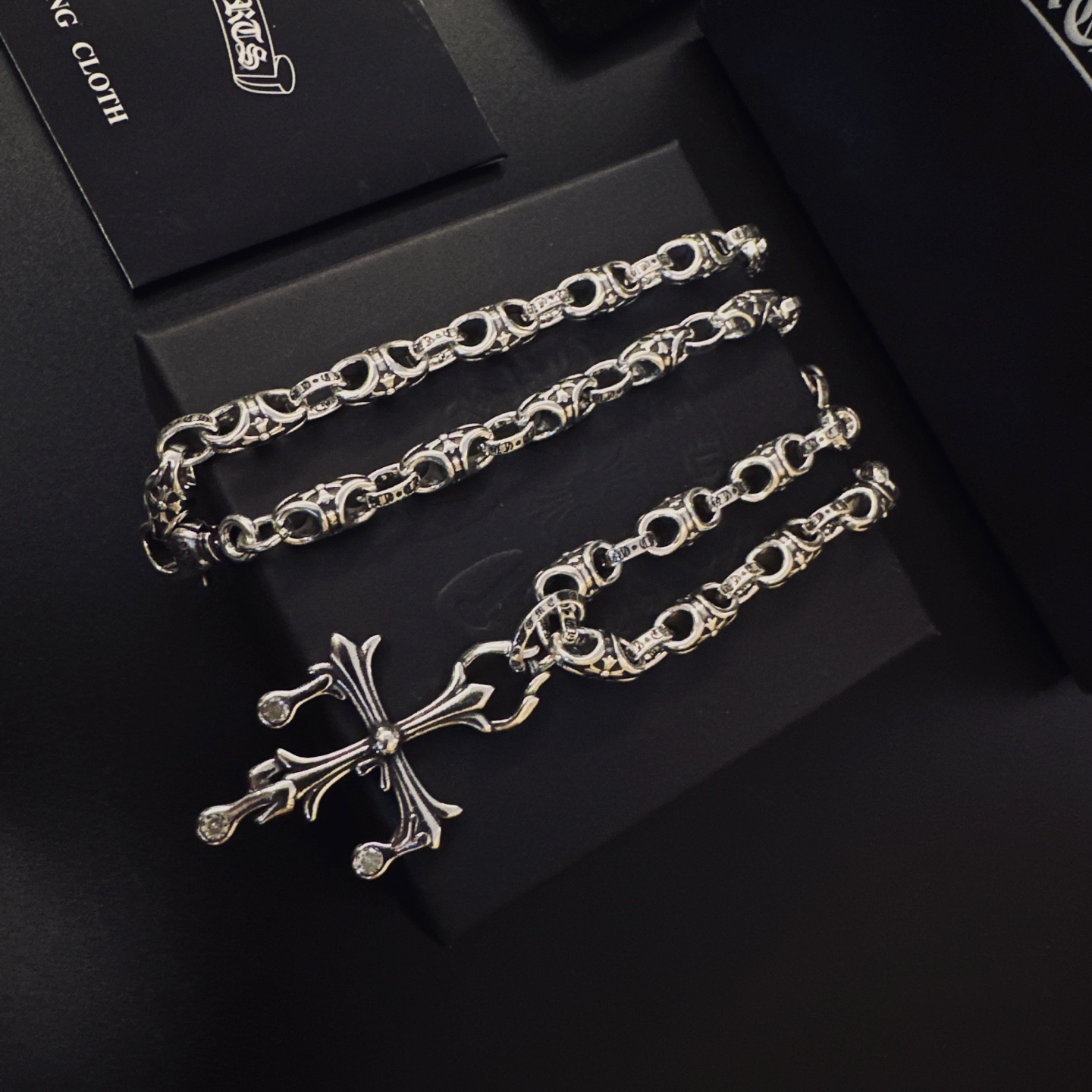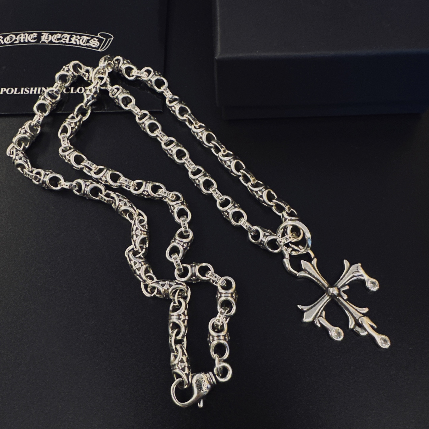 {"product":{ "goodsID":10978231, "skuid":2673160, "relatedCode":"", "cat": 1656, "brand": 448, "goodsIsShow":1, "price":76.00, "skuImage":"https://xcimg.szwego.com/img/39971582/20251216/i1765885221387_1883_0_0.jpg?imageMogr2/auto-orient/thumbnail/!650x650r/quality/100/format/jpg", "skuImage_small":"https://xcimg.szwego.com/img/39971582/20251216/i1765885221387_1883_0_0.jpg?imageMogr2/auto-orient/thumbnail/!440x440r/quality/100/format/jpg", "skuIsShow": 1, "Limited": 0, "LimitedMin": 0, "skuStore": 999, "skuSellCounter":0, "skuReviewCounter":0, "cateAttention":"", "cateAttentionUrl":"", "cateAttentionContent":"", "goodsName":"NO10978231", "goodsBrand":"Chrome Hearts", "category":"Necklaces", "sizeChartID":"0", "promotion":false, "option_image_text_hide":false, "declaration":"Necklaces" },"time":1772506919108}