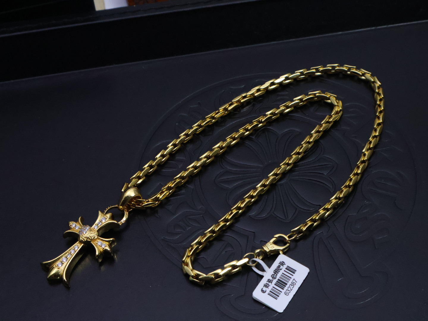 {"product":{ "goodsID":10989503, "skuid":2692722, "relatedCode":"", "cat": 1656, "brand": 448, "goodsIsShow":1, "price":65.00, "skuImage":"https://xcimg.szwego.com/img/6141cbbd/20250217/i1739770883135_9056_0_0.jpg?imageMogr2/auto-orient/thumbnail/!650x650r/quality/100/format/jpg", "skuImage_small":"https://xcimg.szwego.com/img/6141cbbd/20250217/i1739770883135_9056_0_0.jpg?imageMogr2/auto-orient/thumbnail/!440x440r/quality/100/format/jpg", "skuIsShow": 1, "Limited": 0, "LimitedMin": 0, "skuStore": 999, "skuSellCounter":0, "skuReviewCounter":0, "cateAttention":"", "cateAttentionUrl":"", "cateAttentionContent":"", "goodsName":"NO10989503", "goodsBrand":"Chrome Hearts", "category":"Necklaces", "sizeChartID":"0", "promotion":false, "option_image_text_hide":false, "declaration":"Necklaces" },"time":1772474048774}