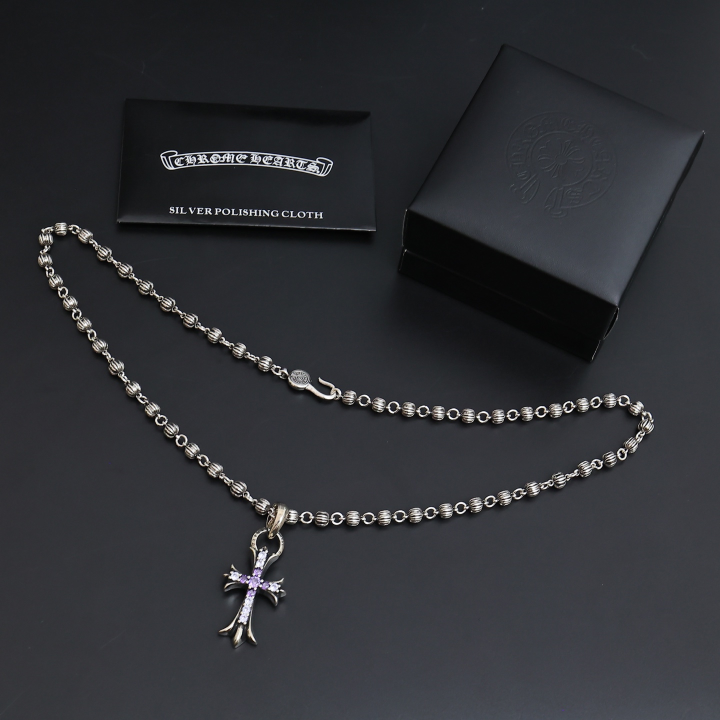 {"product":{ "goodsID":11056637, "skuid":2821318, "relatedCode":"", "cat": 1656, "brand": 448, "goodsIsShow":1, "price":76.00, "skuImage":"https://xcimg.szwego.com/img/39971582/20250626/i1750944053617_1902_0_0.jpg?imageMogr2/auto-orient/thumbnail/!650x650r/quality/100/format/jpg", "skuImage_small":"https://xcimg.szwego.com/img/39971582/20250626/i1750944053617_1902_0_0.jpg?imageMogr2/auto-orient/thumbnail/!440x440r/quality/100/format/jpg", "skuIsShow": 1, "Limited": 0, "LimitedMin": 0, "skuStore": 999, "skuSellCounter":0, "skuReviewCounter":0, "cateAttention":"", "cateAttentionUrl":"", "cateAttentionContent":"", "goodsName":"NO11056637", "goodsBrand":"Chrome Hearts", "category":"Necklaces", "sizeChartID":"0", "promotion":false, "option_image_text_hide":false, "declaration":"Necklaces" },"time":1776607114778}