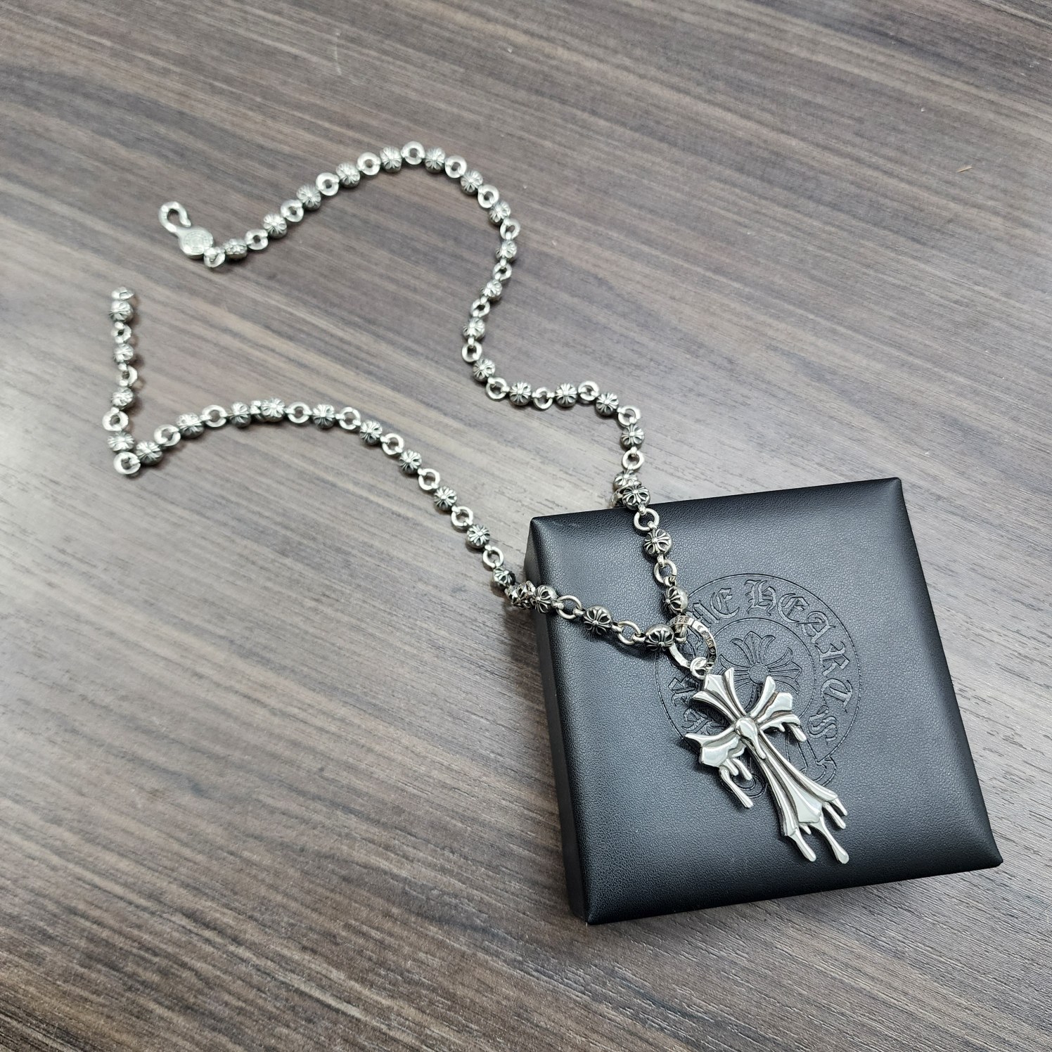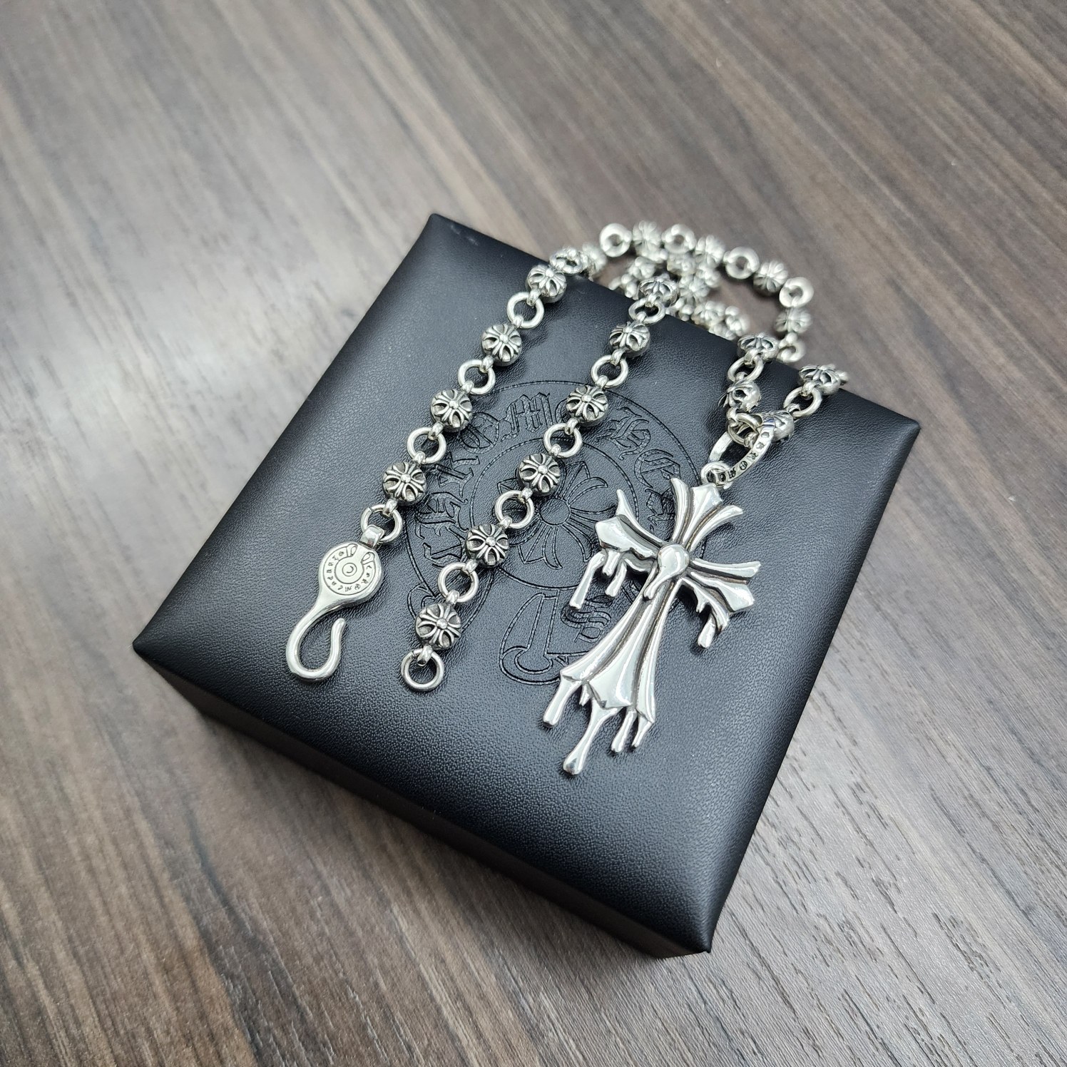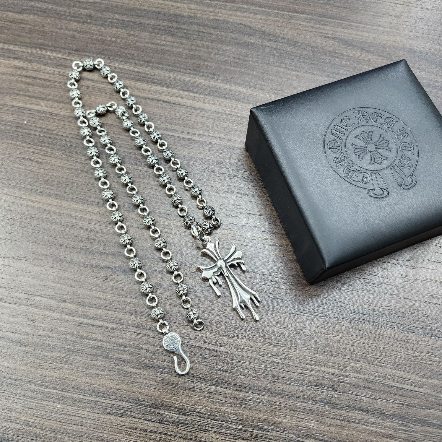 {"product":{ "goodsID":11057730, "skuid":2822411, "relatedCode":"", "cat": 1656, "brand": 448, "goodsIsShow":1, "price":76.00, "skuImage":"https://xcimg.szwego.com/img/a6134c88/20260131/a1769844844070_4015.jpg?imageMogr2/auto-orient/thumbnail/!650x650r/quality/100/format/jpg", "skuImage_small":"https://xcimg.szwego.com/img/a6134c88/20260131/a1769844844070_4015.jpg?imageMogr2/auto-orient/thumbnail/!440x440r/quality/100/format/jpg", "skuIsShow": 1, "Limited": 0, "LimitedMin": 0, "skuStore": 999, "skuSellCounter":0, "skuReviewCounter":0, "cateAttention":"", "cateAttentionUrl":"", "cateAttentionContent":"", "goodsName":"NO11057730", "goodsBrand":"Chrome Hearts", "category":"Necklaces", "sizeChartID":"0", "promotion":false, "option_image_text_hide":false, "declaration":"Necklaces" },"time":1776602280805}