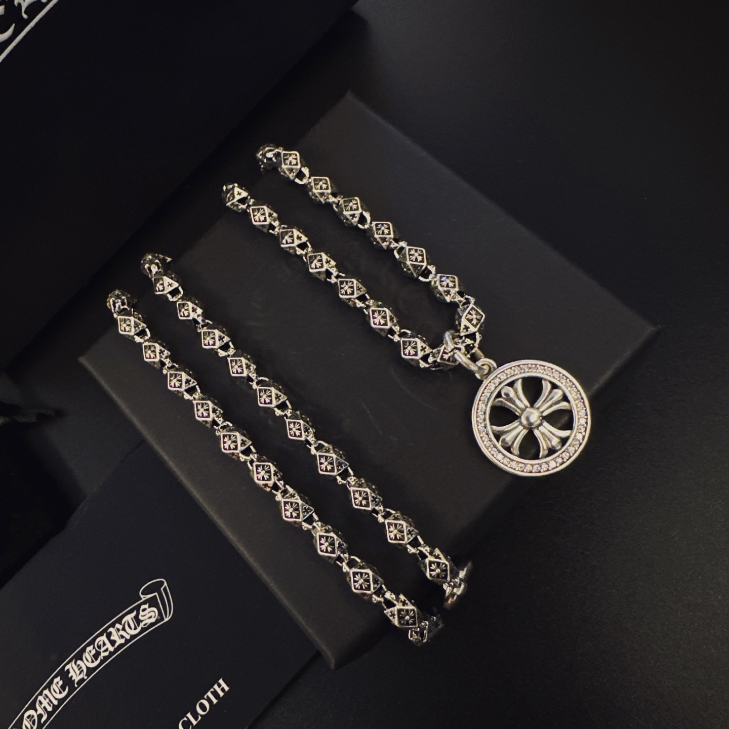{"product":{ "goodsID":11058509, "skuid":2823190, "relatedCode":"", "cat": 1656, "brand": 448, "goodsIsShow":1, "price":76.00, "skuImage":"https://xcimg.szwego.com/img/39971582/20251222/i1766374576286_8399_0_0.jpg?imageMogr2/auto-orient/thumbnail/!650x650r/quality/100/format/jpg", "skuImage_small":"https://xcimg.szwego.com/img/39971582/20251222/i1766374576286_8399_0_0.jpg?imageMogr2/auto-orient/thumbnail/!440x440r/quality/100/format/jpg", "skuIsShow": 1, "Limited": 0, "LimitedMin": 0, "skuStore": 999, "skuSellCounter":0, "skuReviewCounter":0, "cateAttention":"", "cateAttentionUrl":"", "cateAttentionContent":"", "goodsName":"NO11058509", "goodsBrand":"Chrome Hearts", "category":"Necklaces", "sizeChartID":"0", "promotion":false, "option_image_text_hide":false, "declaration":"Necklaces" },"time":1776597391182}