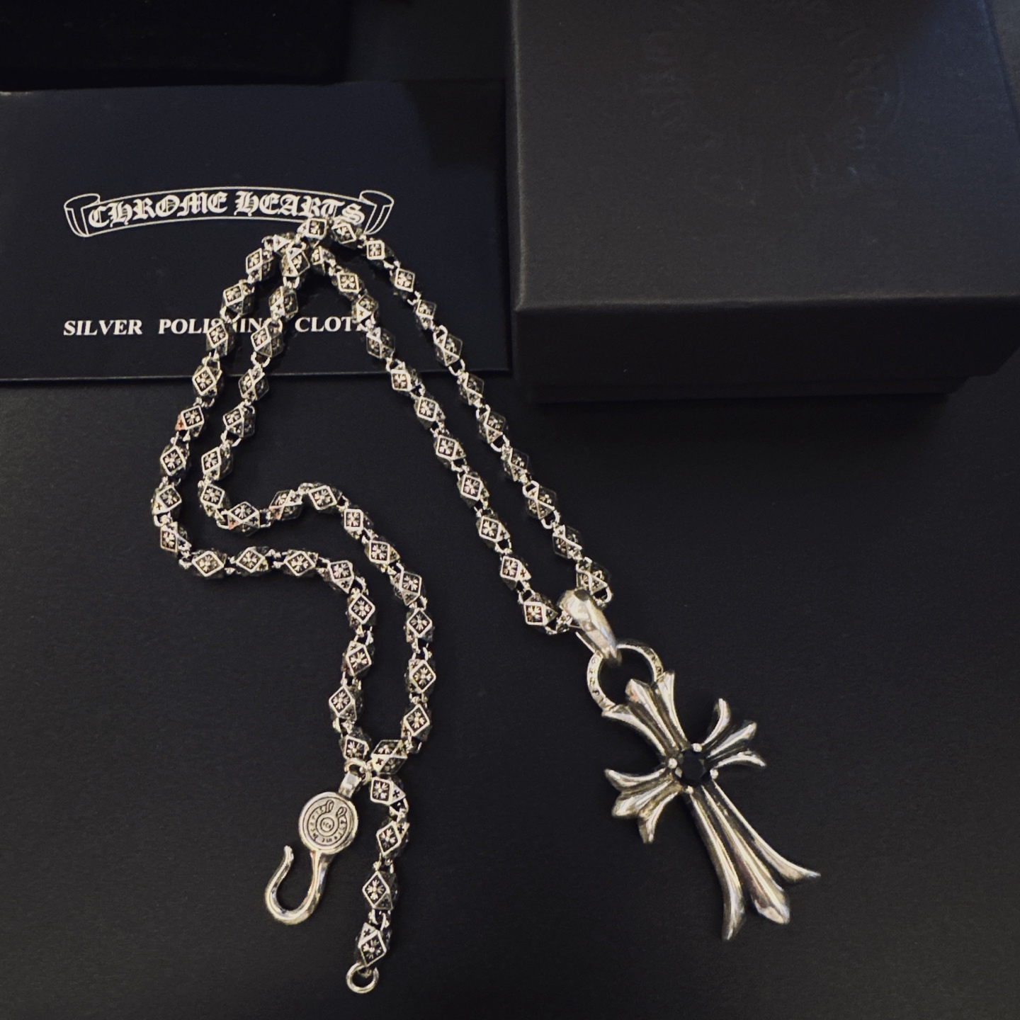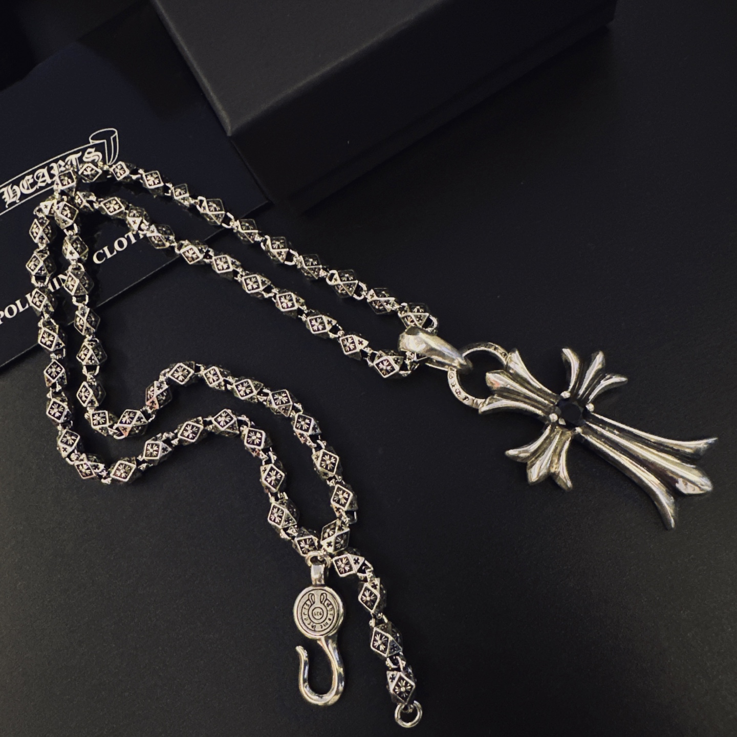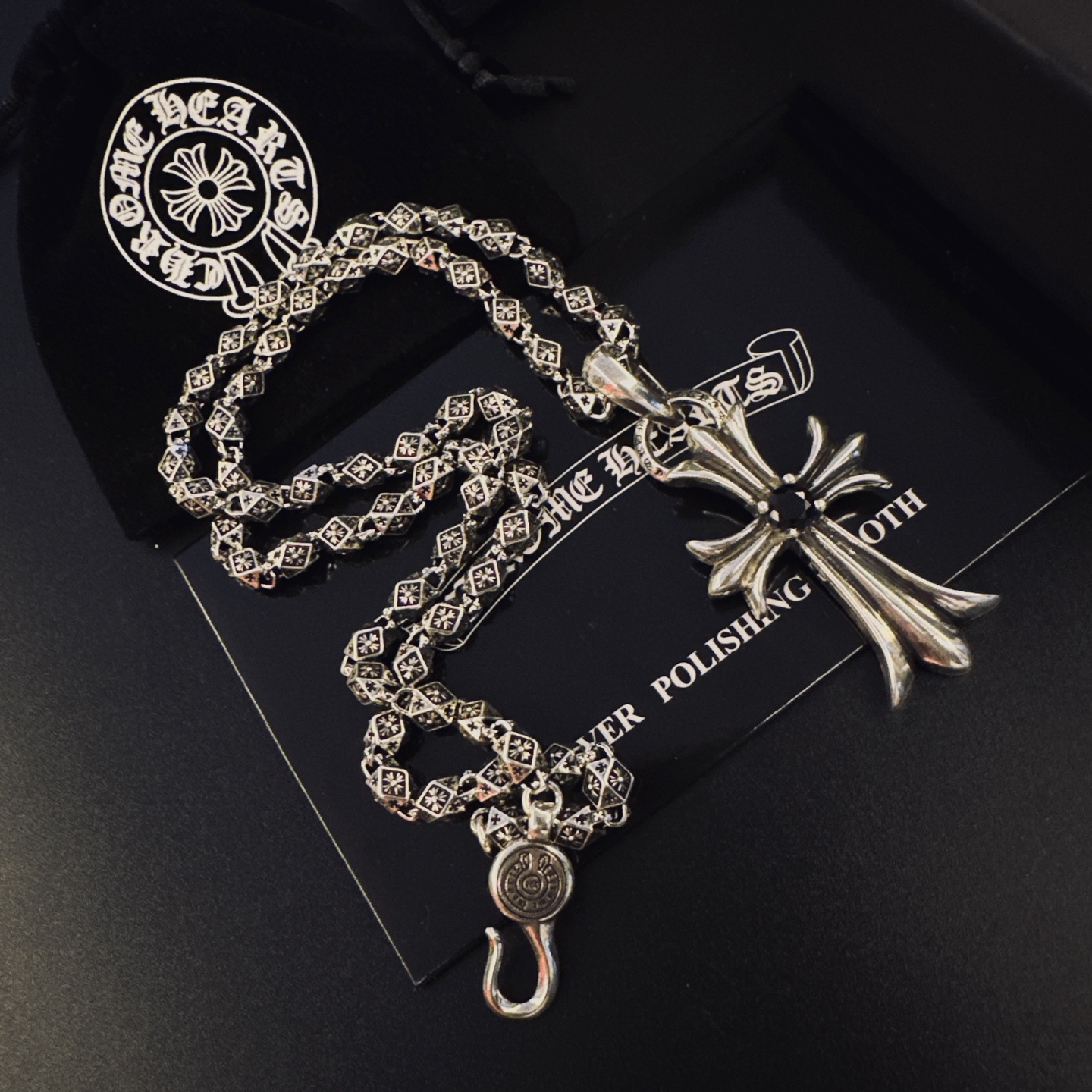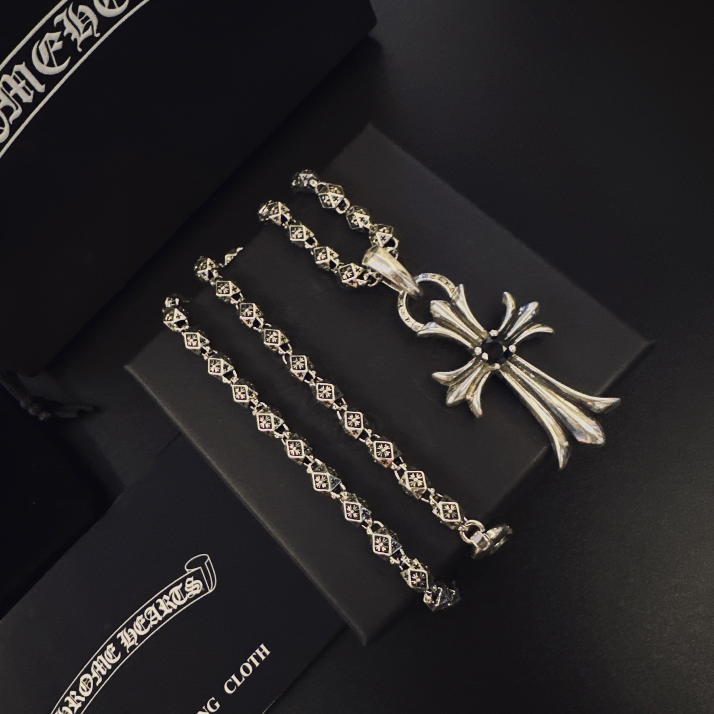 {"product":{ "goodsID":11058510, "skuid":2823191, "relatedCode":"", "cat": 1656, "brand": 448, "goodsIsShow":1, "price":76.00, "skuImage":"https://xcimg.szwego.com/img/39971582/20251222/i1766374591887_2282_0_0.jpg?imageMogr2/auto-orient/thumbnail/!650x650r/quality/100/format/jpg", "skuImage_small":"https://xcimg.szwego.com/img/39971582/20251222/i1766374591887_2282_0_0.jpg?imageMogr2/auto-orient/thumbnail/!440x440r/quality/100/format/jpg", "skuIsShow": 1, "Limited": 0, "LimitedMin": 0, "skuStore": 999, "skuSellCounter":0, "skuReviewCounter":0, "cateAttention":"", "cateAttentionUrl":"", "cateAttentionContent":"", "goodsName":"NO11058510", "goodsBrand":"Chrome Hearts", "category":"Necklaces", "sizeChartID":"0", "promotion":false, "option_image_text_hide":false, "declaration":"Necklaces" },"time":1776597327979}