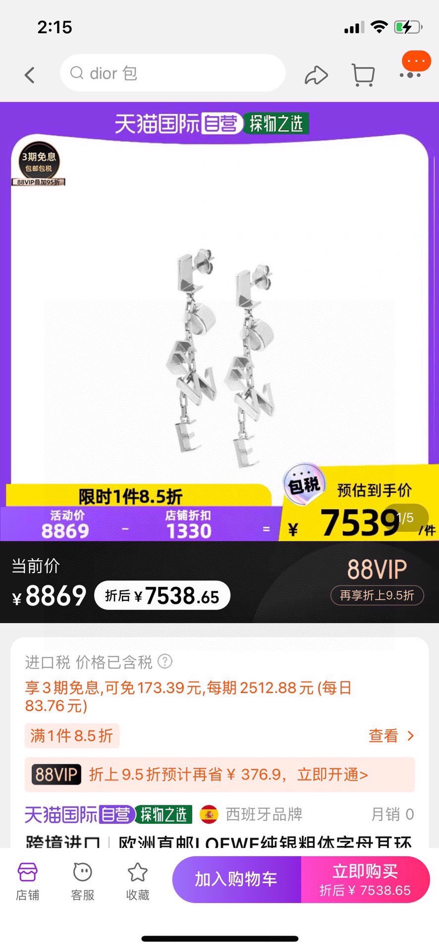 {"product":{ "goodsID":11061769, "skuid":2826450, "relatedCode":"", "cat": 1657, "brand": 504, "goodsIsShow":1, "price":29.00, "skuImage":"https://xcimg.szwego.com/img/b29e116e/20260408/i1775620046605_4531_0_0.jpg?imageMogr2/auto-orient/thumbnail/!650x650r/quality/100/format/jpg", "skuImage_small":"https://xcimg.szwego.com/img/b29e116e/20260408/i1775620046605_4531_0_0.jpg?imageMogr2/auto-orient/thumbnail/!440x440r/quality/100/format/jpg", "skuIsShow": 1, "Limited": 0, "LimitedMin": 0, "skuStore": 999, "skuSellCounter":0, "skuReviewCounter":0, "cateAttention":"", "cateAttentionUrl":"", "cateAttentionContent":"", "goodsName":"NO11061769", "goodsBrand":"Loewe", "category":"Earrings", "sizeChartID":"0", "promotion":false, "option_image_text_hide":false, "declaration":"Earrings" },"time":1776588711144}