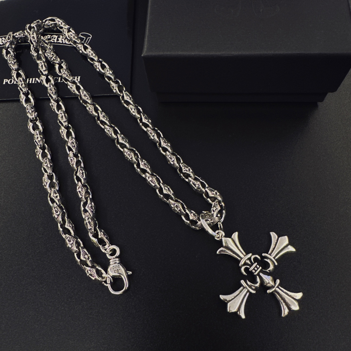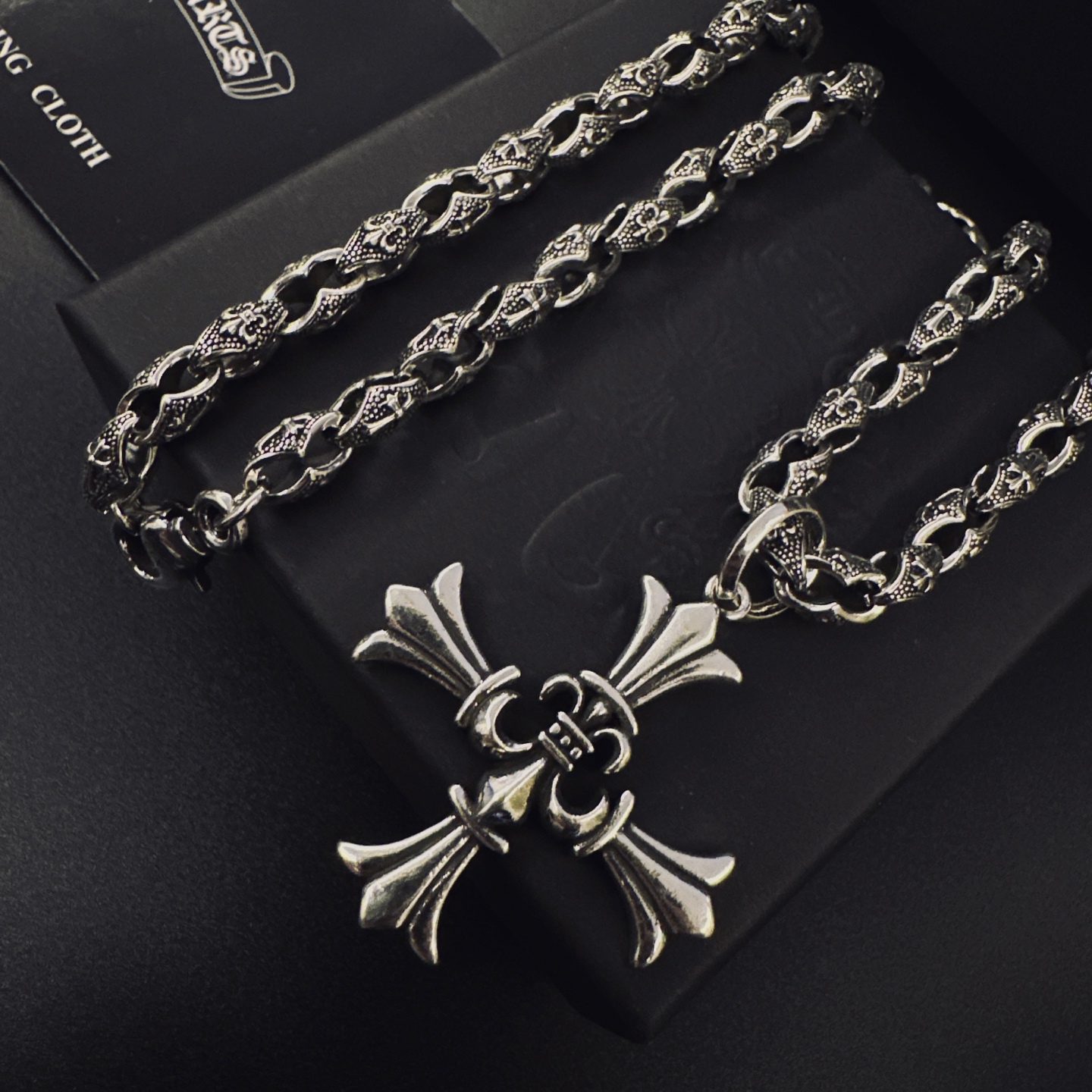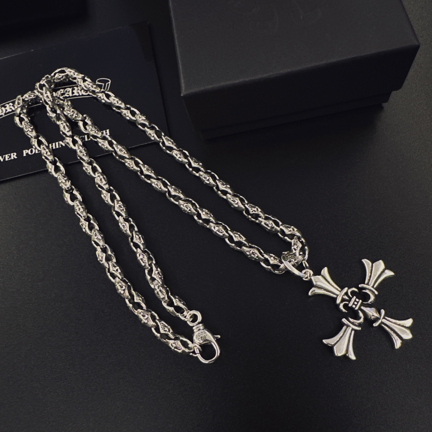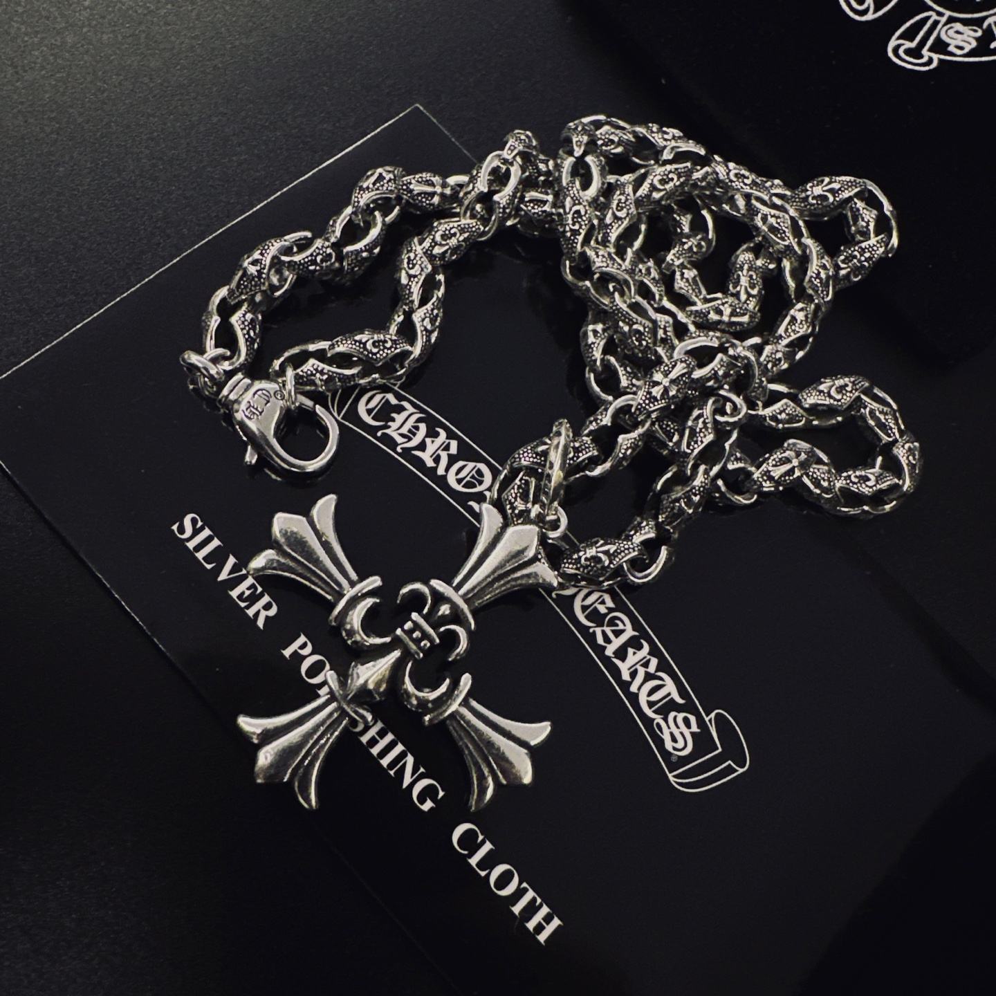 {"product":{ "goodsID":11053346, "skuid":2818027, "relatedCode":"", "cat": 1656, "brand": 448, "goodsIsShow":1, "price":76.00, "skuImage":"https://xcimg.szwego.com/img/39971582/20251116/i1763261707989_2521_0_0.jpg?imageMogr2/auto-orient/thumbnail/!650x650r/quality/100/format/jpg", "skuImage_small":"https://xcimg.szwego.com/img/39971582/20251116/i1763261707989_2521_0_0.jpg?imageMogr2/auto-orient/thumbnail/!440x440r/quality/100/format/jpg", "skuIsShow": 1, "Limited": 0, "LimitedMin": 0, "skuStore": 999, "skuSellCounter":0, "skuReviewCounter":0, "cateAttention":"", "cateAttentionUrl":"", "cateAttentionContent":"", "goodsName":"p135 Chrome Hearts", "goodsBrand":"Chrome Hearts", "category":"Necklaces", "sizeChartID":"0", "promotion":false, "option_image_text_hide":false, "declaration":"Necklaces" },"time":1776478852489}