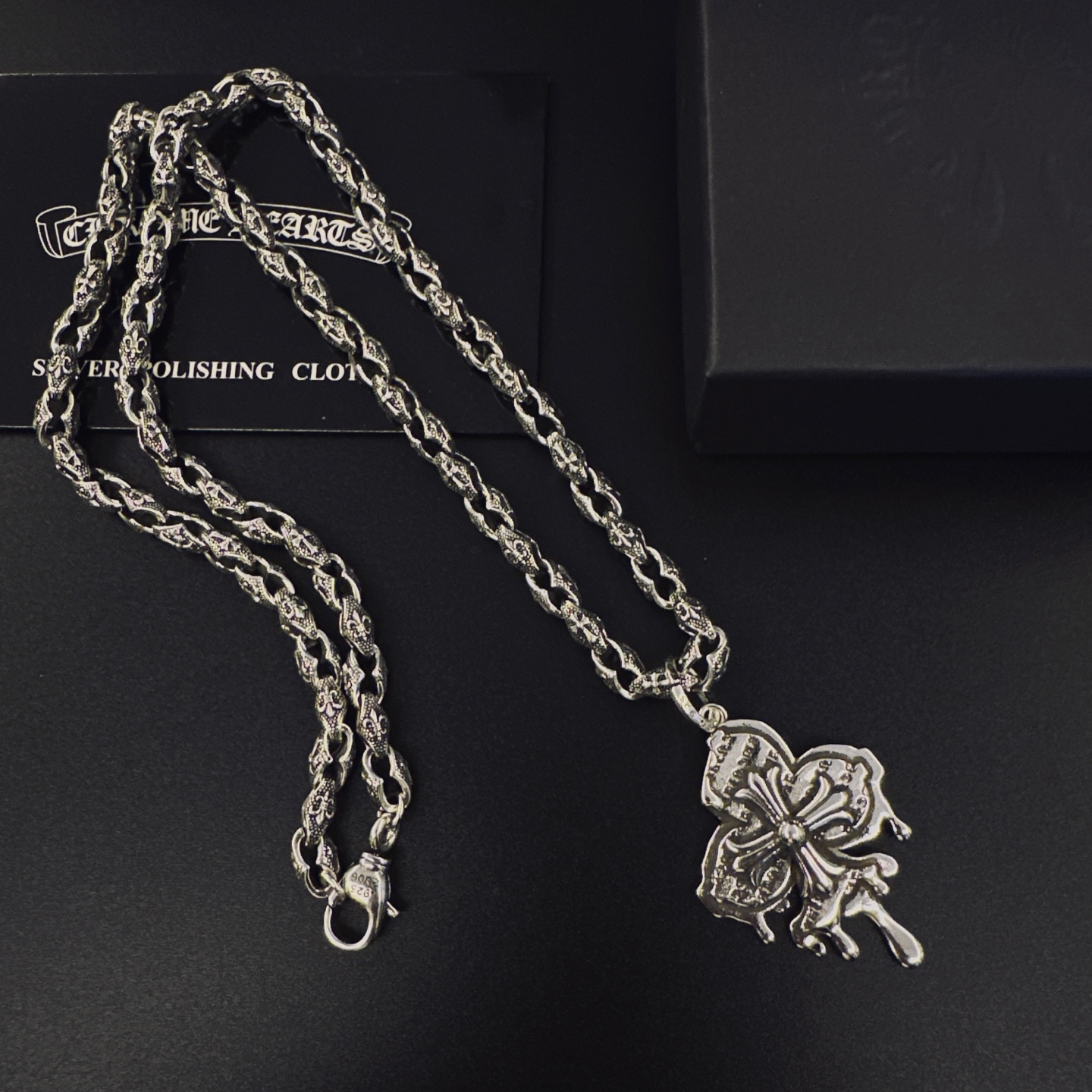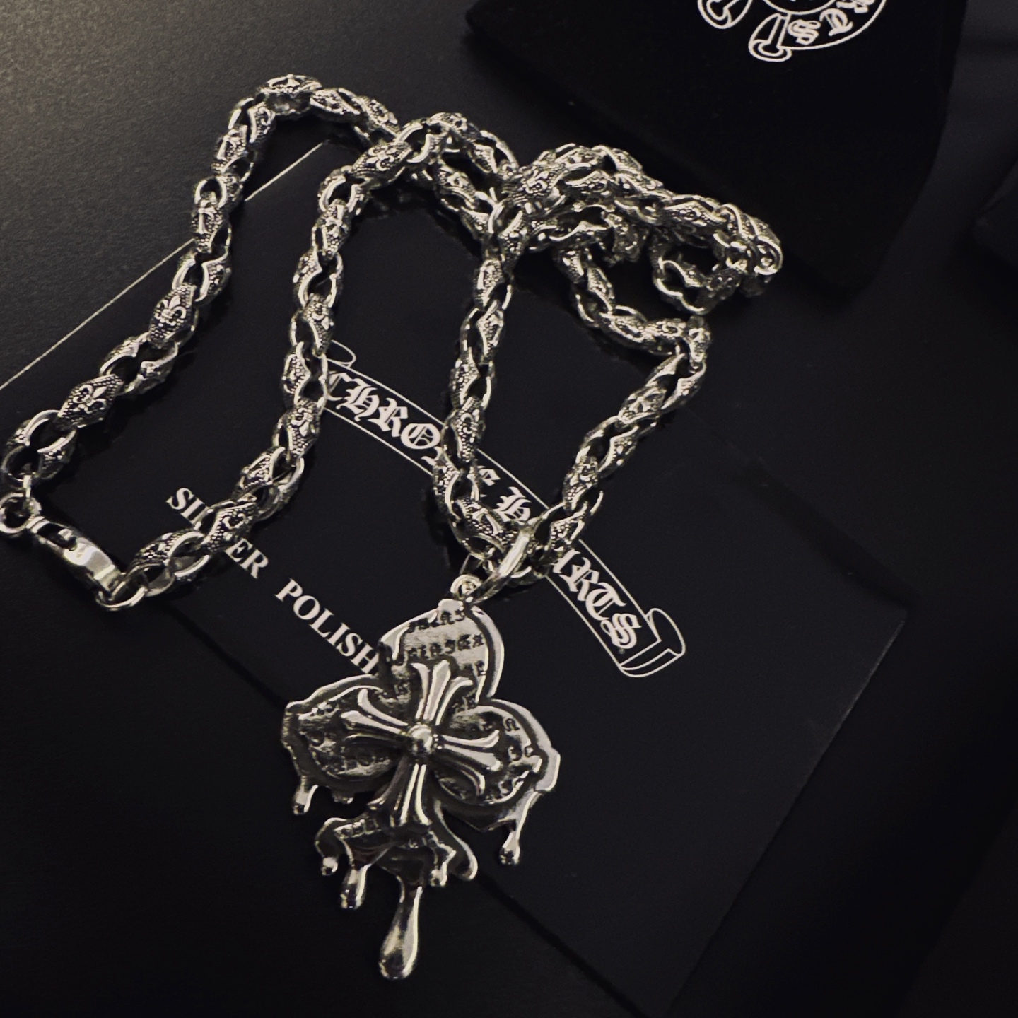 {"product":{ "goodsID":11053351, "skuid":2818032, "relatedCode":"", "cat": 1656, "brand": 448, "goodsIsShow":1, "price":76.00, "skuImage":"https://xcimg.szwego.com/img/39971582/20251116/i1763261661009_4160_0_0.jpg?imageMogr2/auto-orient/thumbnail/!650x650r/quality/100/format/jpg", "skuImage_small":"https://xcimg.szwego.com/img/39971582/20251116/i1763261661009_4160_0_0.jpg?imageMogr2/auto-orient/thumbnail/!440x440r/quality/100/format/jpg", "skuIsShow": 1, "Limited": 0, "LimitedMin": 0, "skuStore": 999, "skuSellCounter":0, "skuReviewCounter":0, "cateAttention":"", "cateAttentionUrl":"", "cateAttentionContent":"", "goodsName":"p135 Chrome Hearts", "goodsBrand":"Chrome Hearts", "category":"Necklaces", "sizeChartID":"0", "promotion":false, "option_image_text_hide":false, "declaration":"Necklaces" },"time":1776478852766}